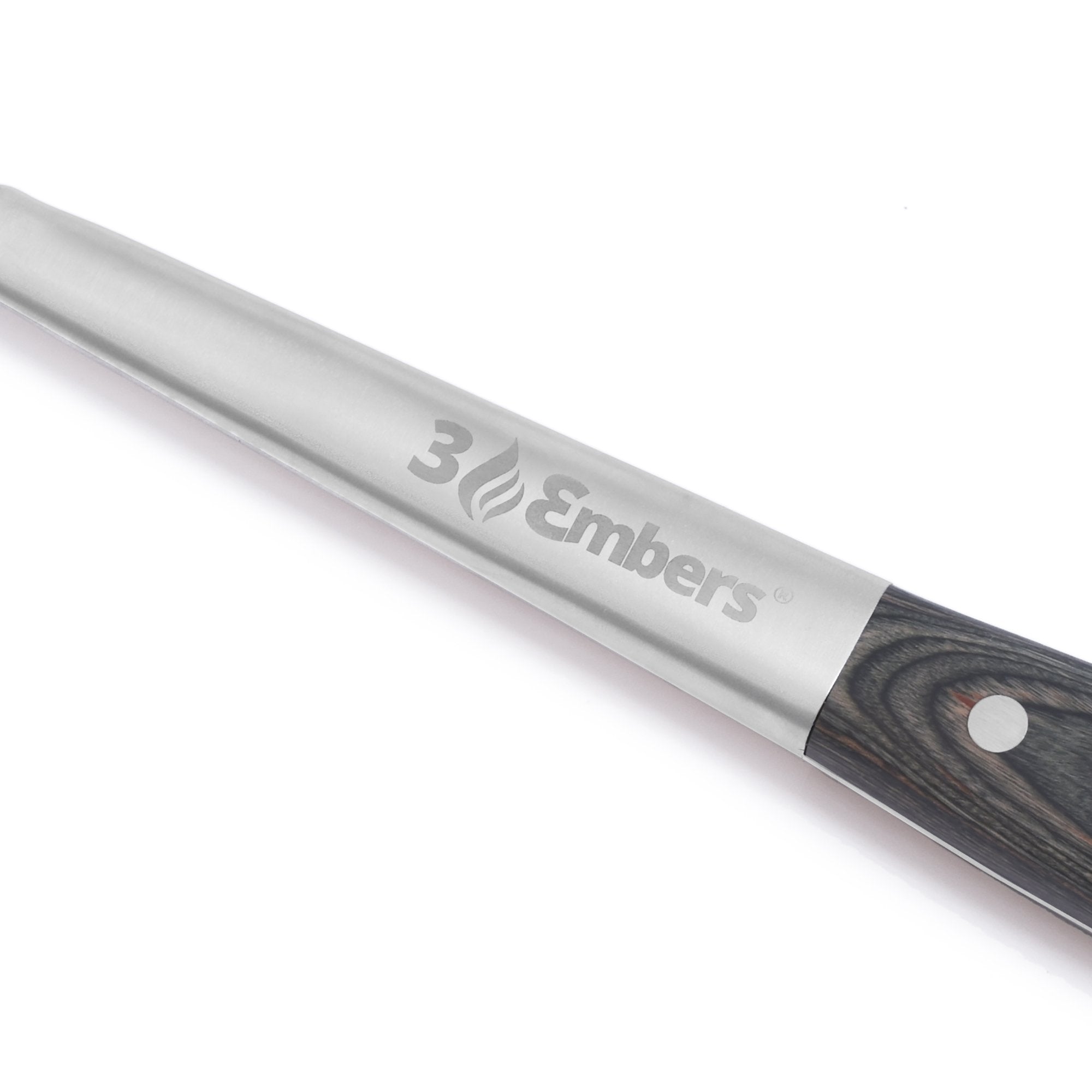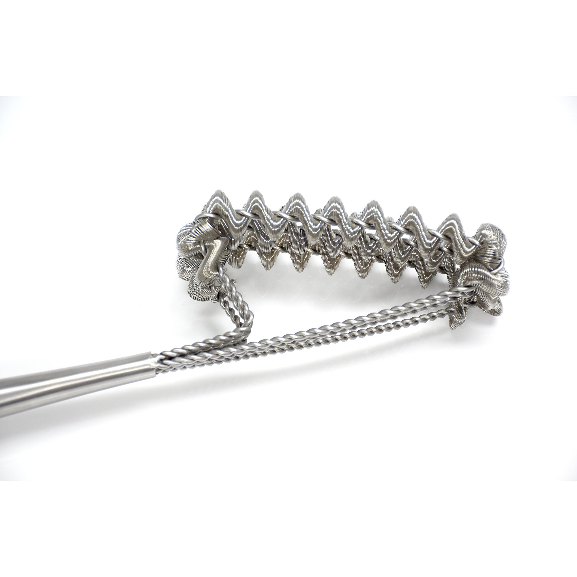 The 3 Embers ACC7404AS Stainless Steel Grill Cleaning Brush is perfect for keeping your grill spotless. This stainless steel metal grill brush features a coil design that ensures that you will not have any bristles break off or end up in your food. This unique BBQ grill brush makes cleaning your grates very easy. The wire grill brush has metal rings for hanging on your grill. The grill cleaning brush also features a durable pakkawood handle.