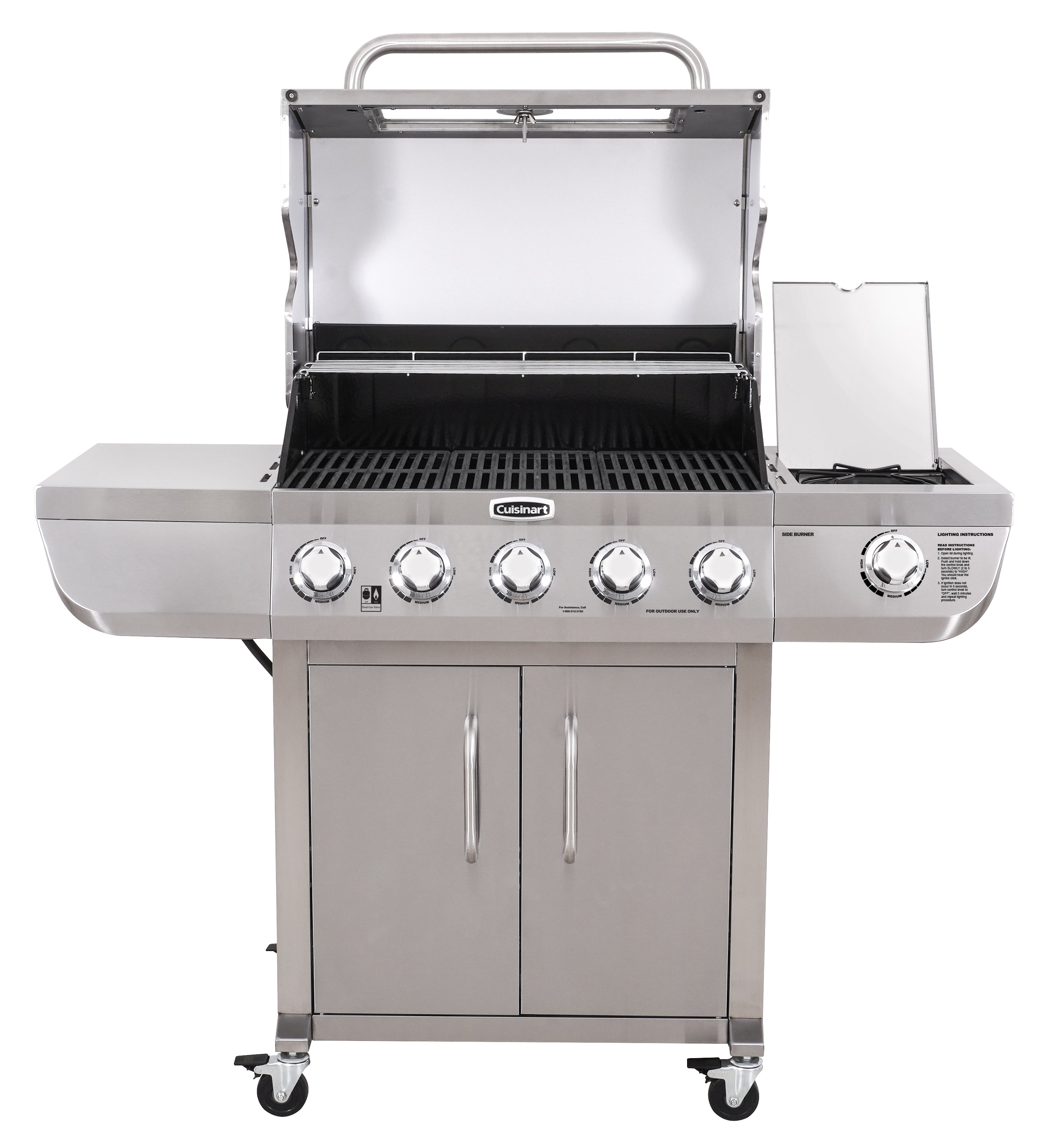 - Prepare everyone’s favorite side dishes on the powerful 12,000 BTU side burner.