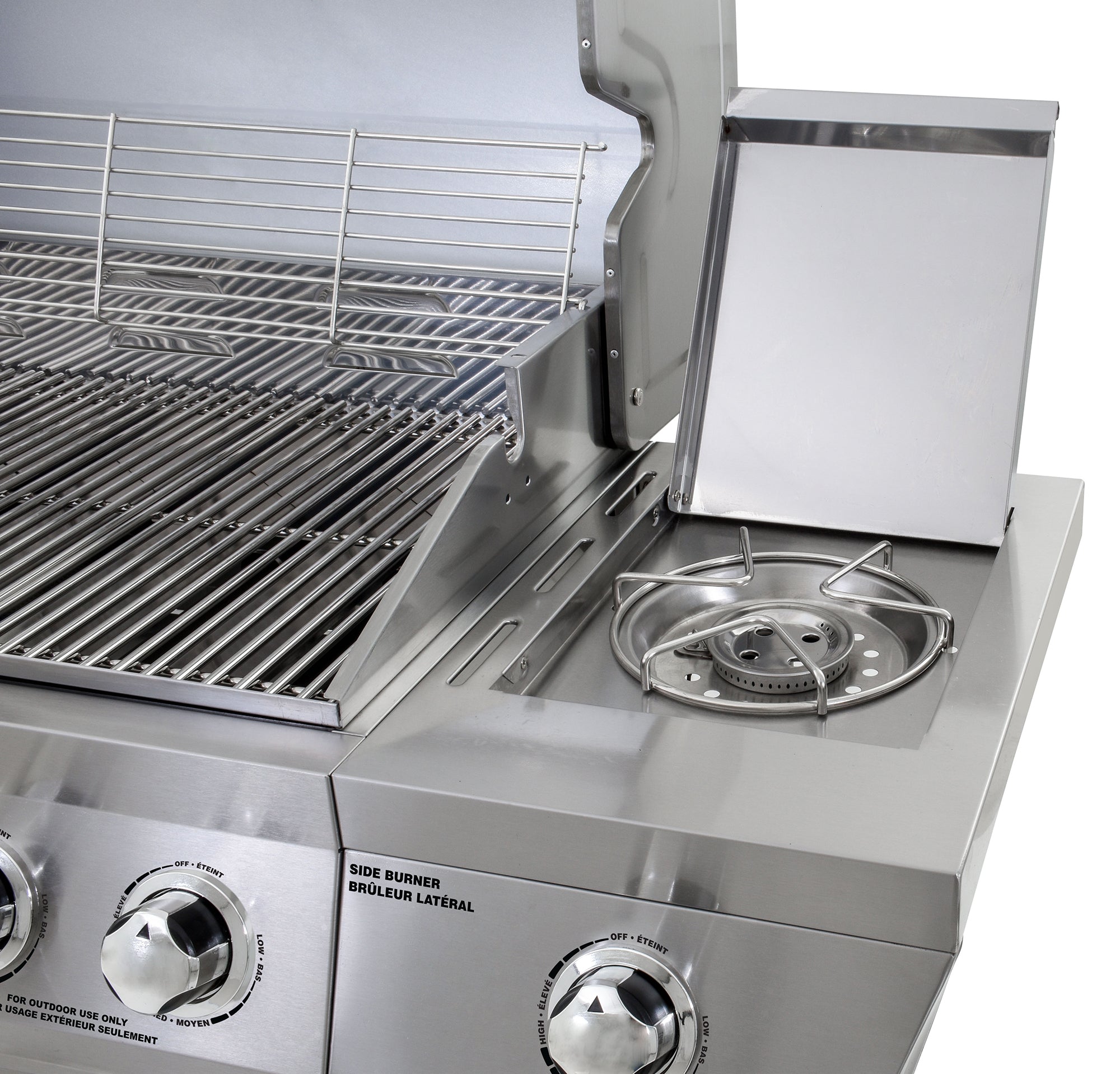- Stainless-Steel Side Burner: Easily prepare side-dishes on the 12,000 BTU side burner.
