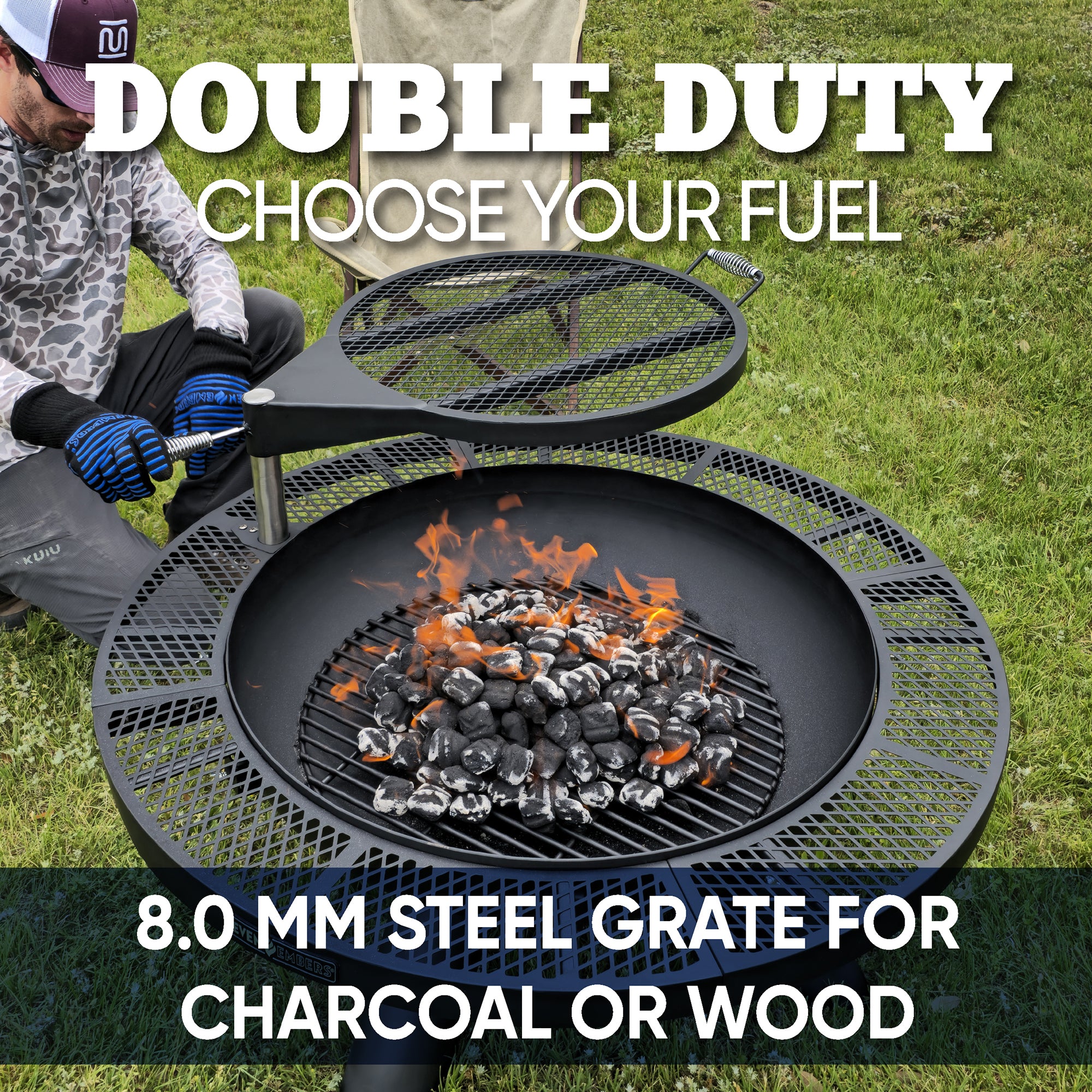 - Heavy-duty 8mm charcoal or wood grate
