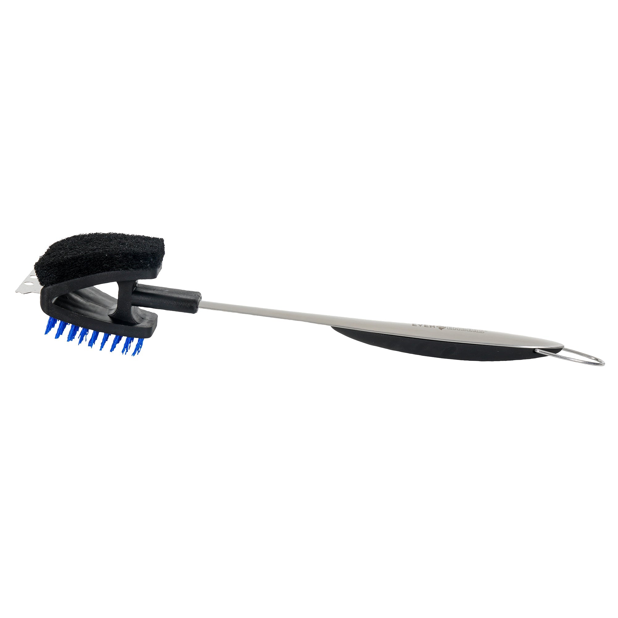 Clean your cooking grates your way with the Even Embers Combo Grill Brush with Scraper. Scrub the top of your cooking grates with the bristle-free scrubber pad or get an even deeper clean and scrub away leftover food residue with the nylon bristles and attached scraper. Even the dirtiest grills get sparkling clean when you are using the Even Embers Combo Grill Brush with Scraper.