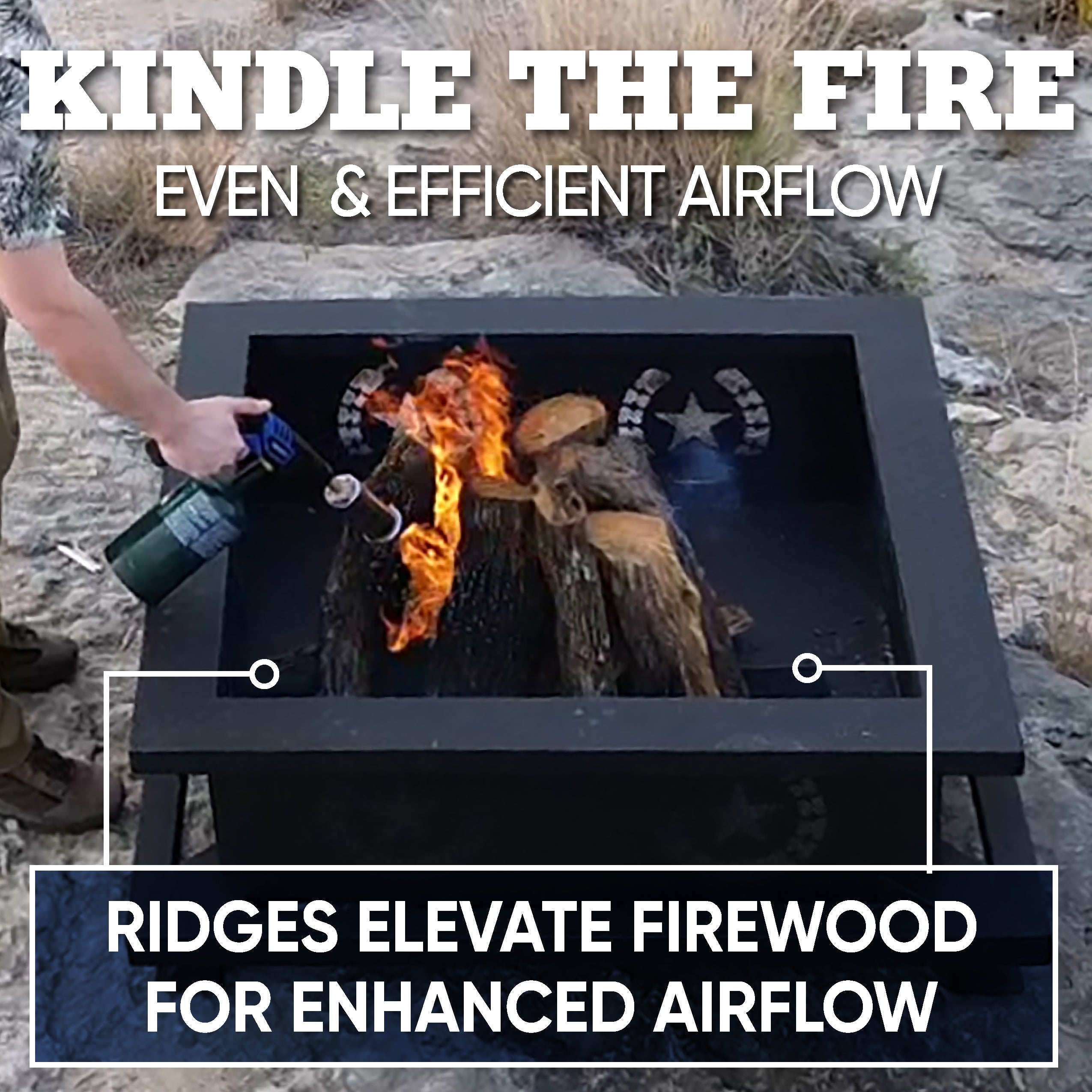- Ridges for Enhanced Airflow: Elevates firewood to improve airflow, ensuring an even and efficient burn