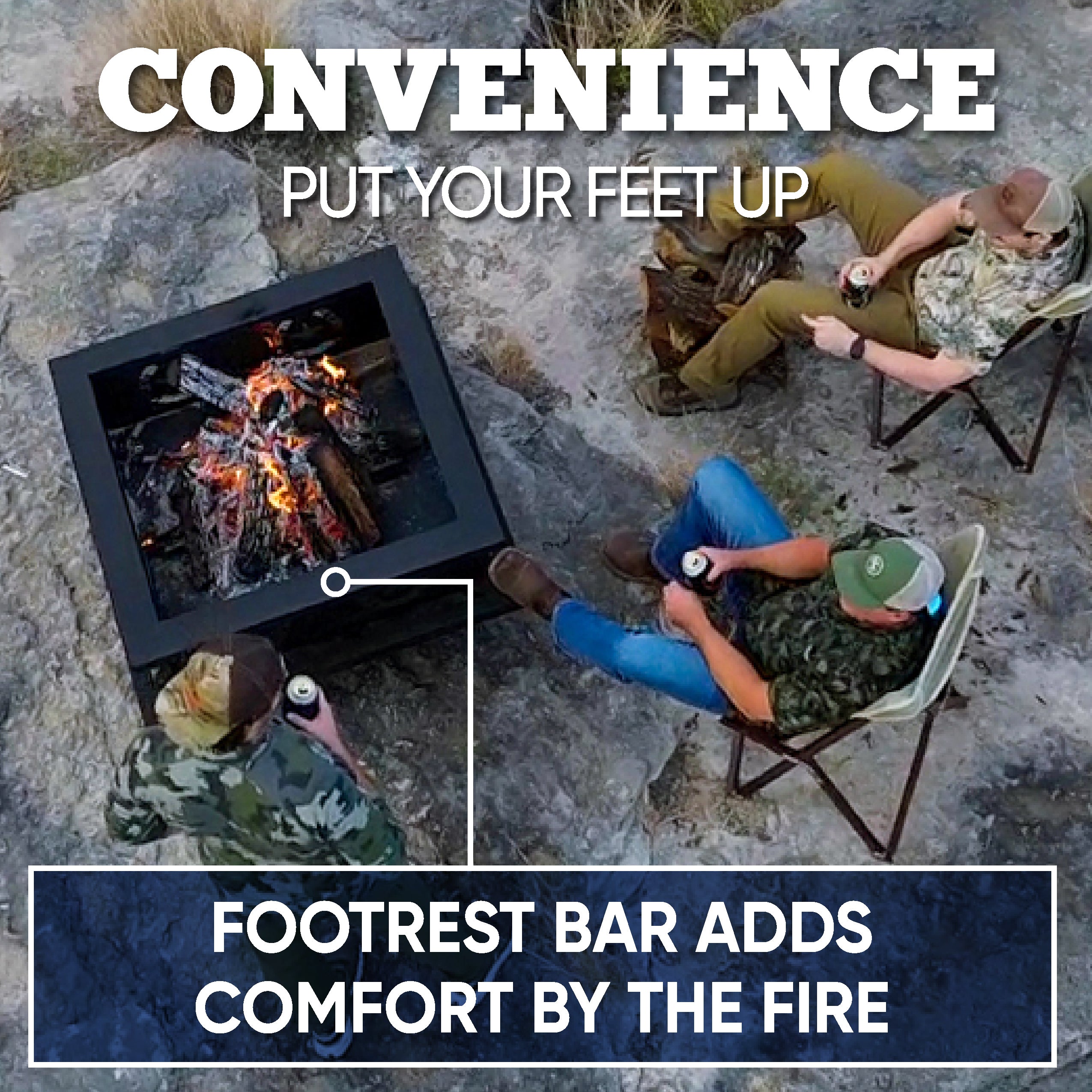 - Convenient Footrest Bar: Adds comfort while you relax by the fire