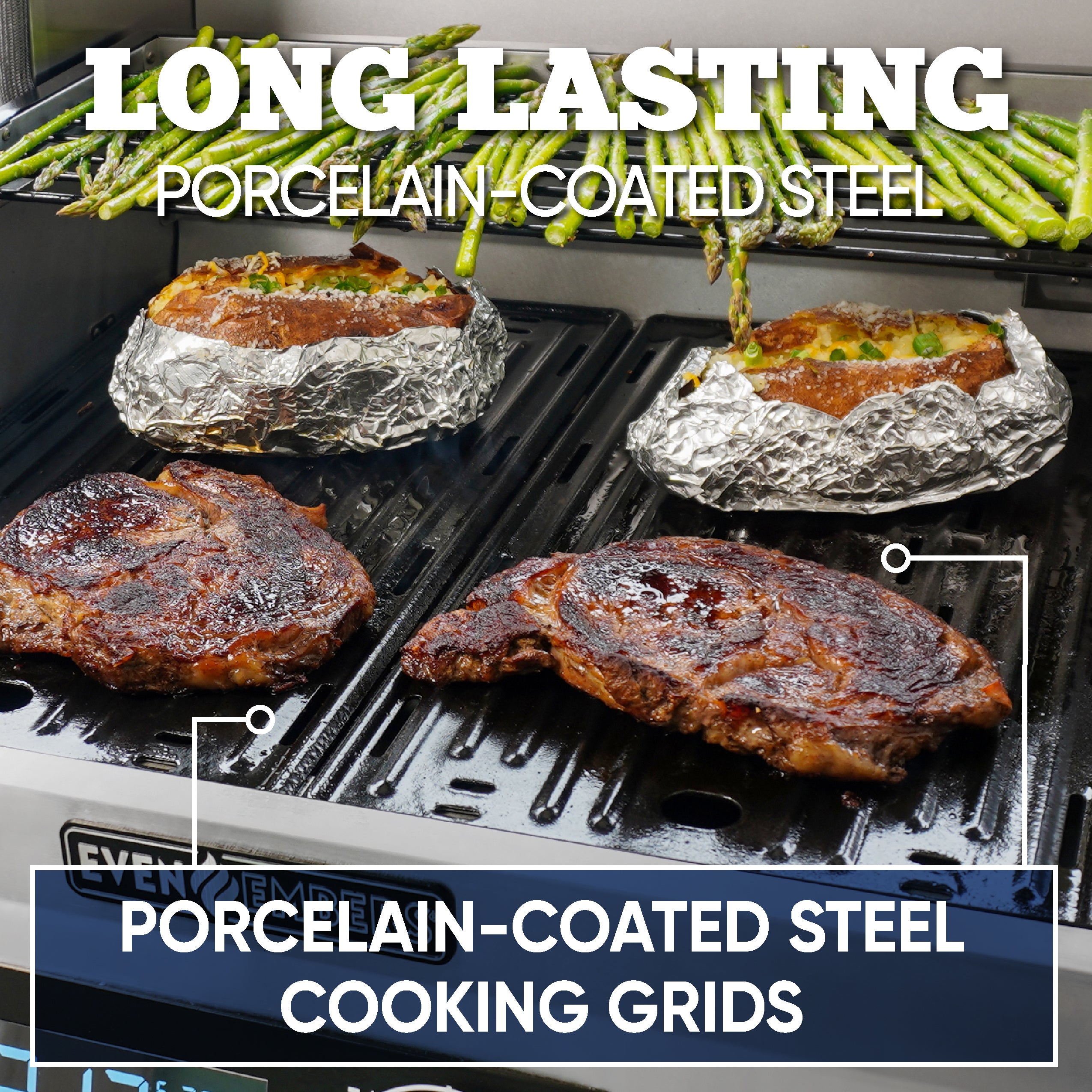- Durable construction: fully welded stainless-steel lid and porcelain-coated steel cooking grids for long-lasting durability and easy cleaning