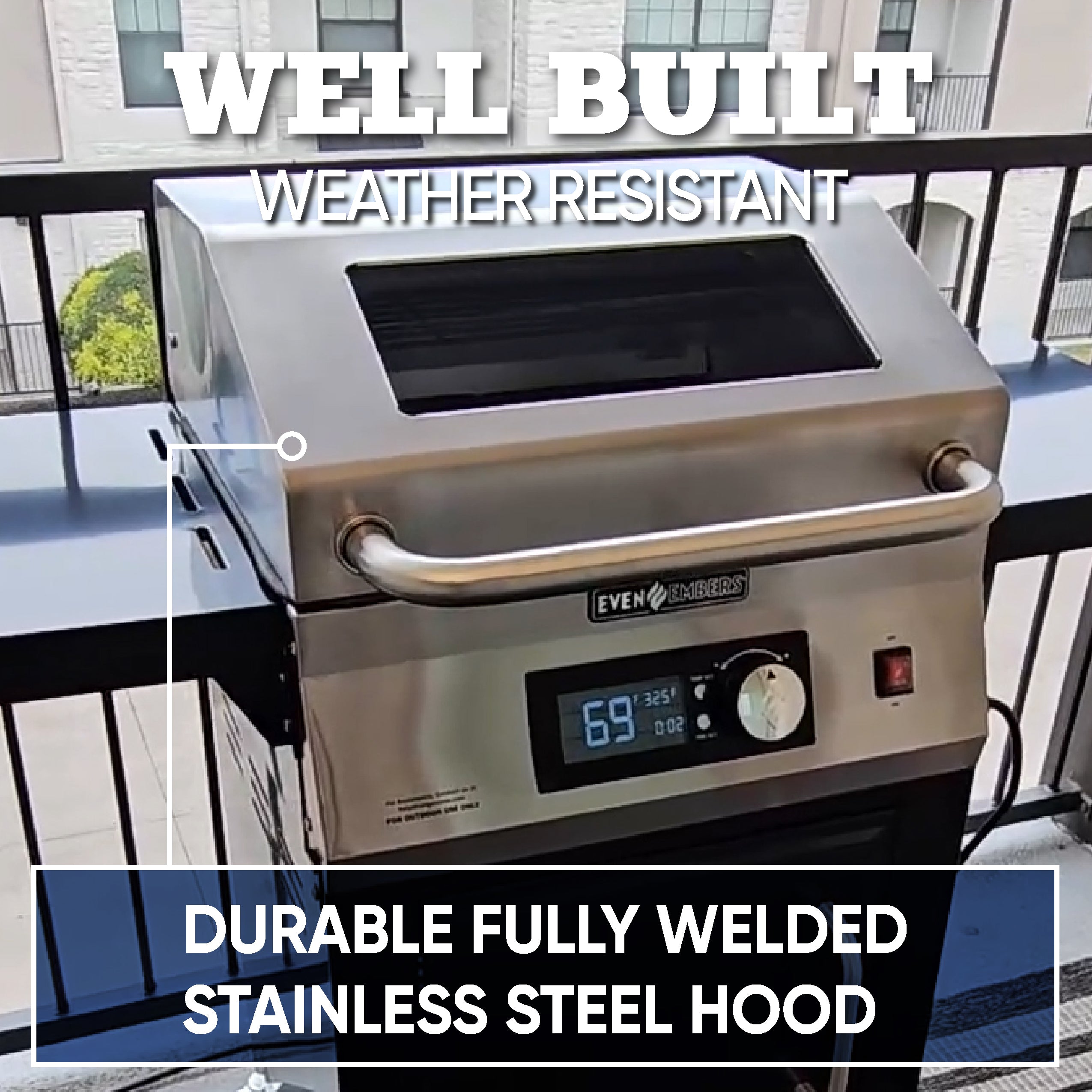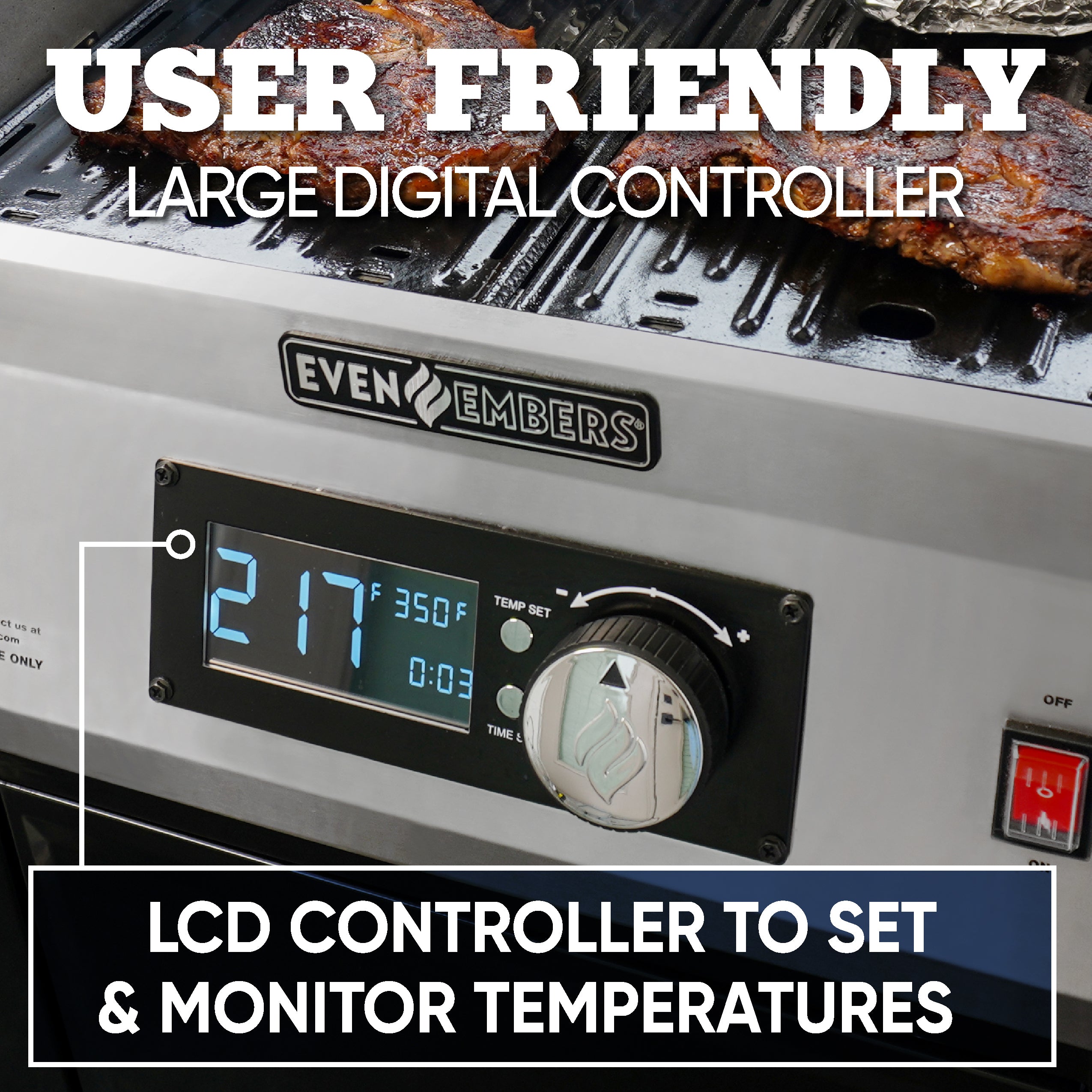 Even Embers Outdoor Electric Grill in Black with Stainless Steel Lid and Control Panel