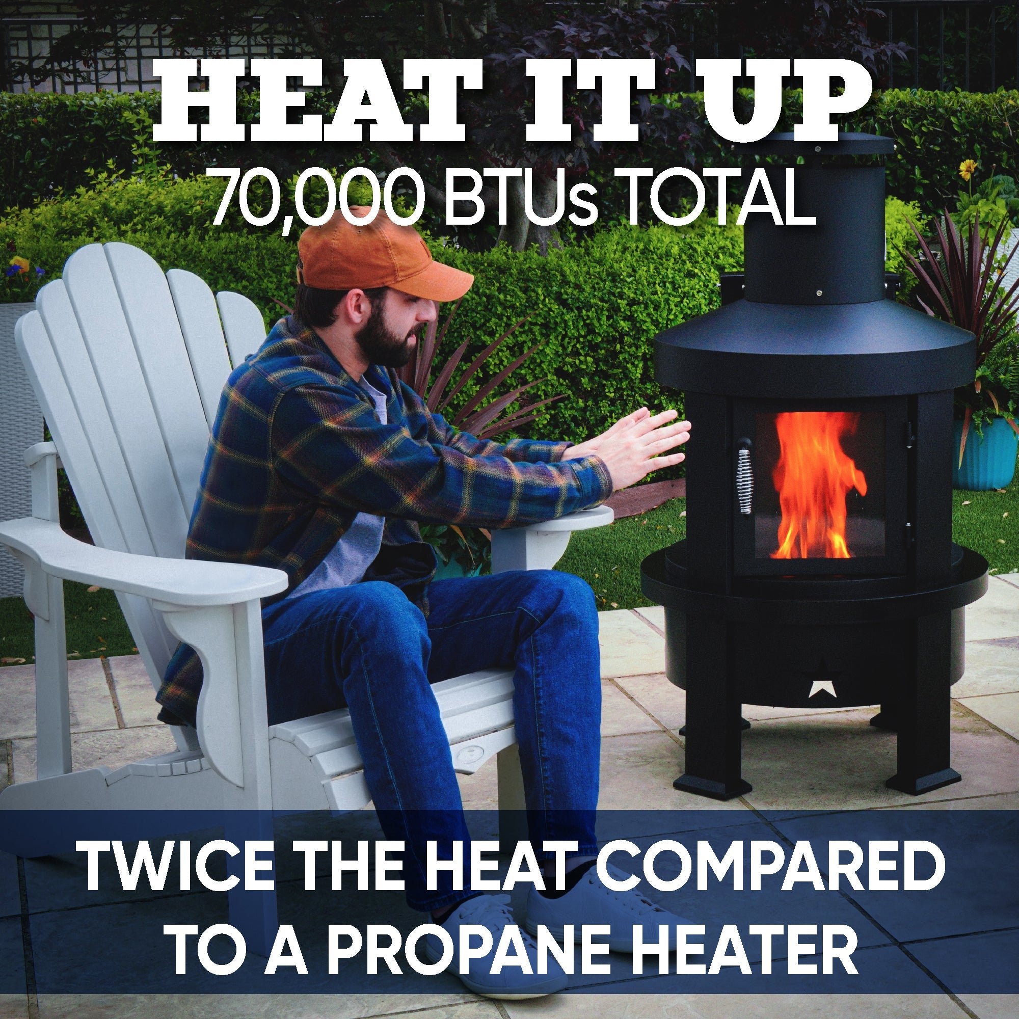 We've got your backyard covered year-round with the Even Embers Pellet Chiminea. The Even Embers Pellet Chiminea brings MORE Efficient Heat, MORE Control, MORE Fuel Efficiency, and MORE Cost Savings to your outdoor heating experience. With over one hundred square feet of heating space producing 70,000 total BTUs, enjoy twice the heat compared to your traditional propane heater. After assembling, fill the 25 lb. pellet hopper with your choice of hardwood pellets, apply a small amount of lighter fluid onto the pellets and use a lighter to ignite the pellets. Sit back and relax by the enclosed flame through the large glass viewing windows for the perfect campfire ambiance. This chiminea outperforms traditional propane heaters by heating from the ground up for more efficient heating, providing more heat fueled by hardwood pellets and saving up to 75% of the average fuel cost of traditional propane units. Easily adjust the pellet flow system from low to high settings, providing the perfect warmth solution for you and your guests. Enjoy no auger, no cords, and no hassle. The easy 2-step ash cleanout system provides a quick and easy clean-up process after every use. Heat up your backyard patio, local tailgate, and all other outdoor gatherings with the heater designed to provide an even heat experience from your toes to your nose.