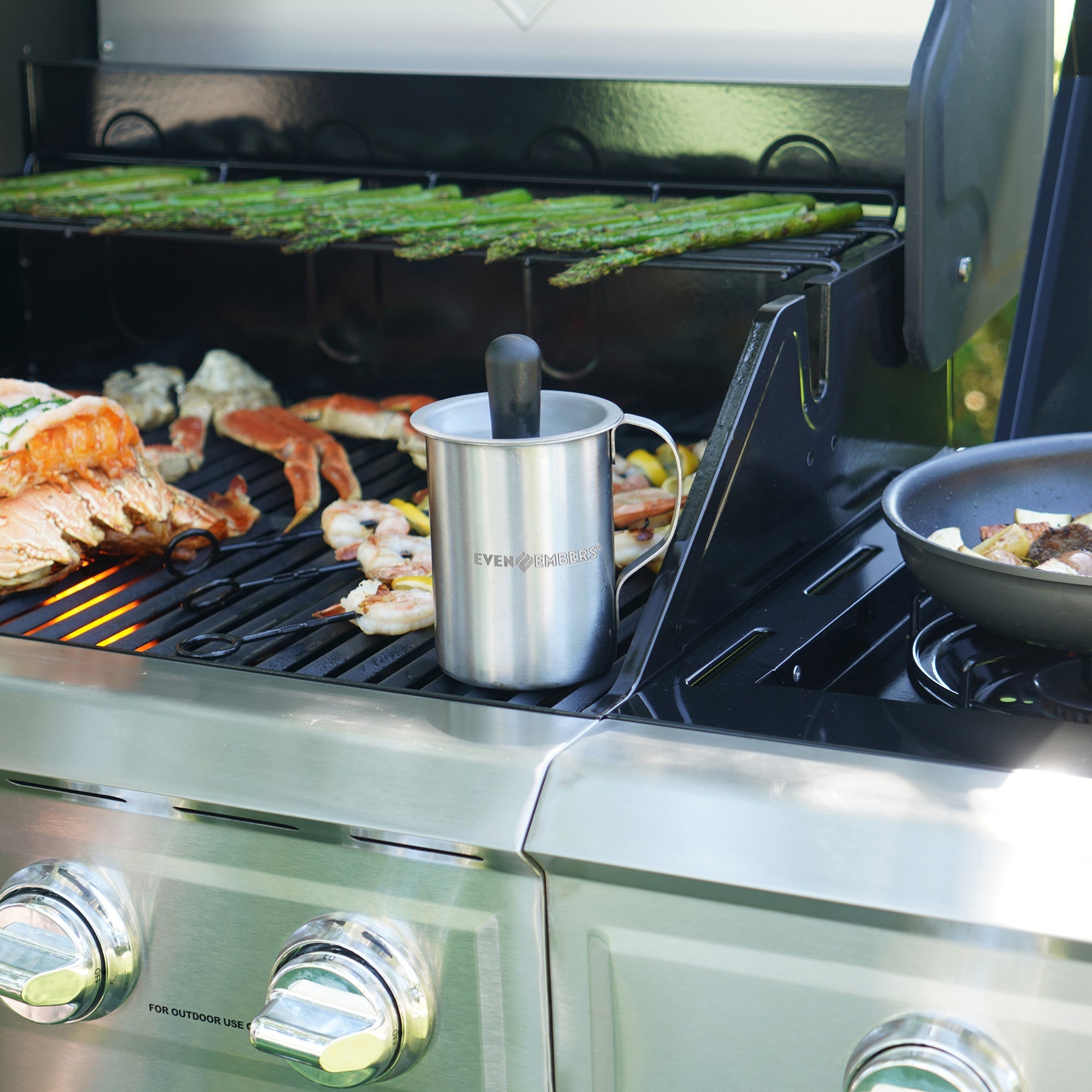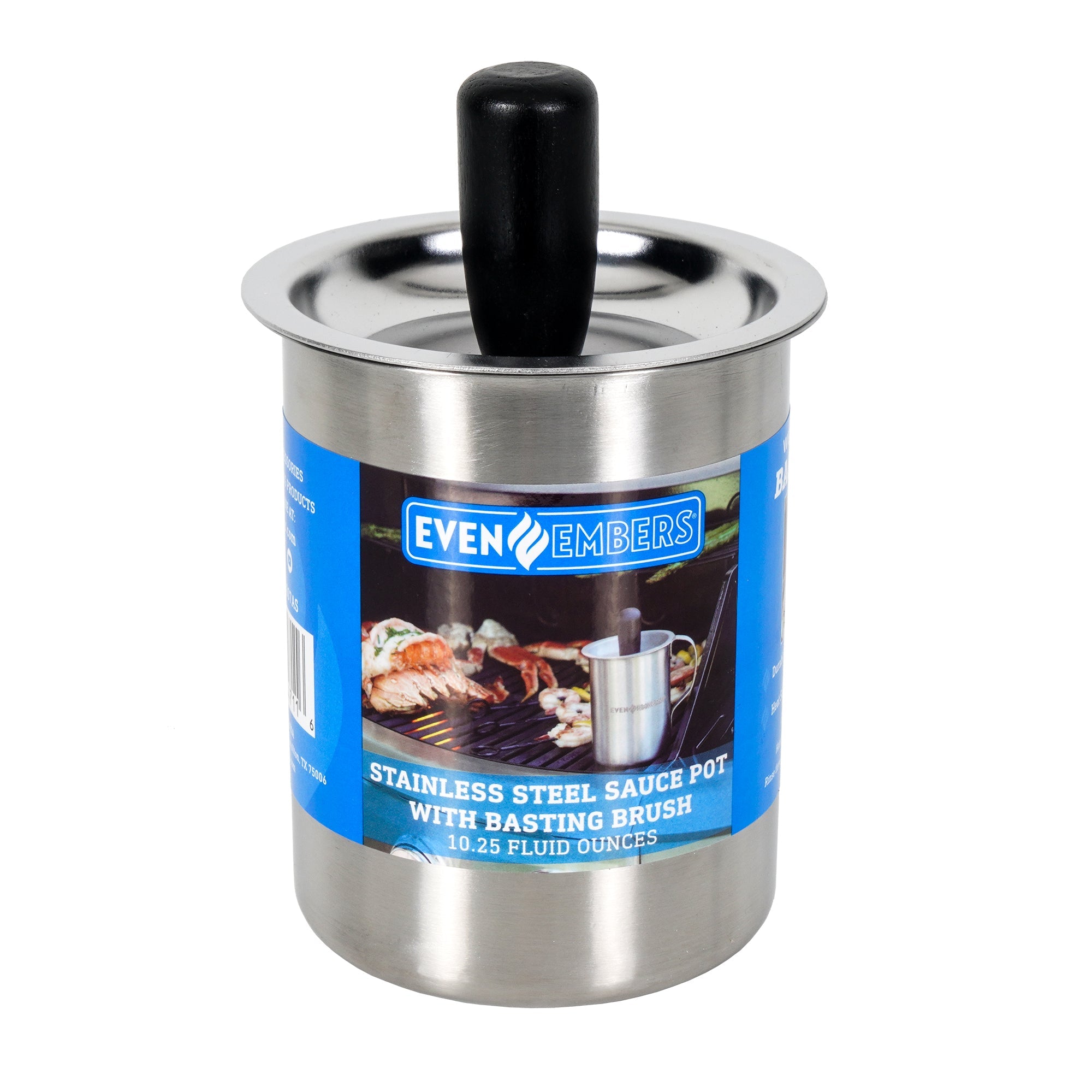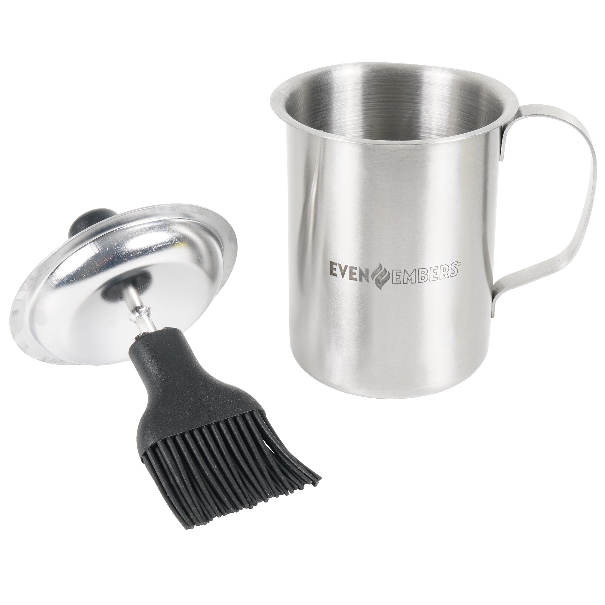 The Even Embers Sauce Pot and Basting Brush seamlessly combines a 17 fluid oz sauce pot with a built-in silicone basting brush in the handle, providing convenience and efficiency in one. Ideal for outdoor grilling and smoking, durable stainless steel set ensures your sauces and marinades are applied with precision, enhancing the flavor of your culinary creations. Elevate your barbecue experience with this durable, functional, and stylish sauce pot and basting brush set, designed to withstand the rigors of outdoor cooking while delivering delectable results.