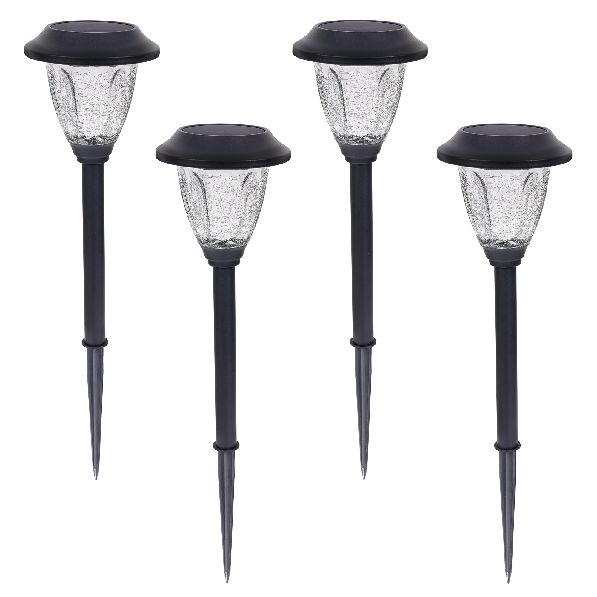 Bring the decor outdoors with the 4-Pack 20 Lumen Solar Lights by Lux Landscape. The stylish glass housing, featuring a decorative design, includes an integrated solar panel that charges the battery during the daytime. Insert the stake into the ground to brighten up your outdoor space year-round.