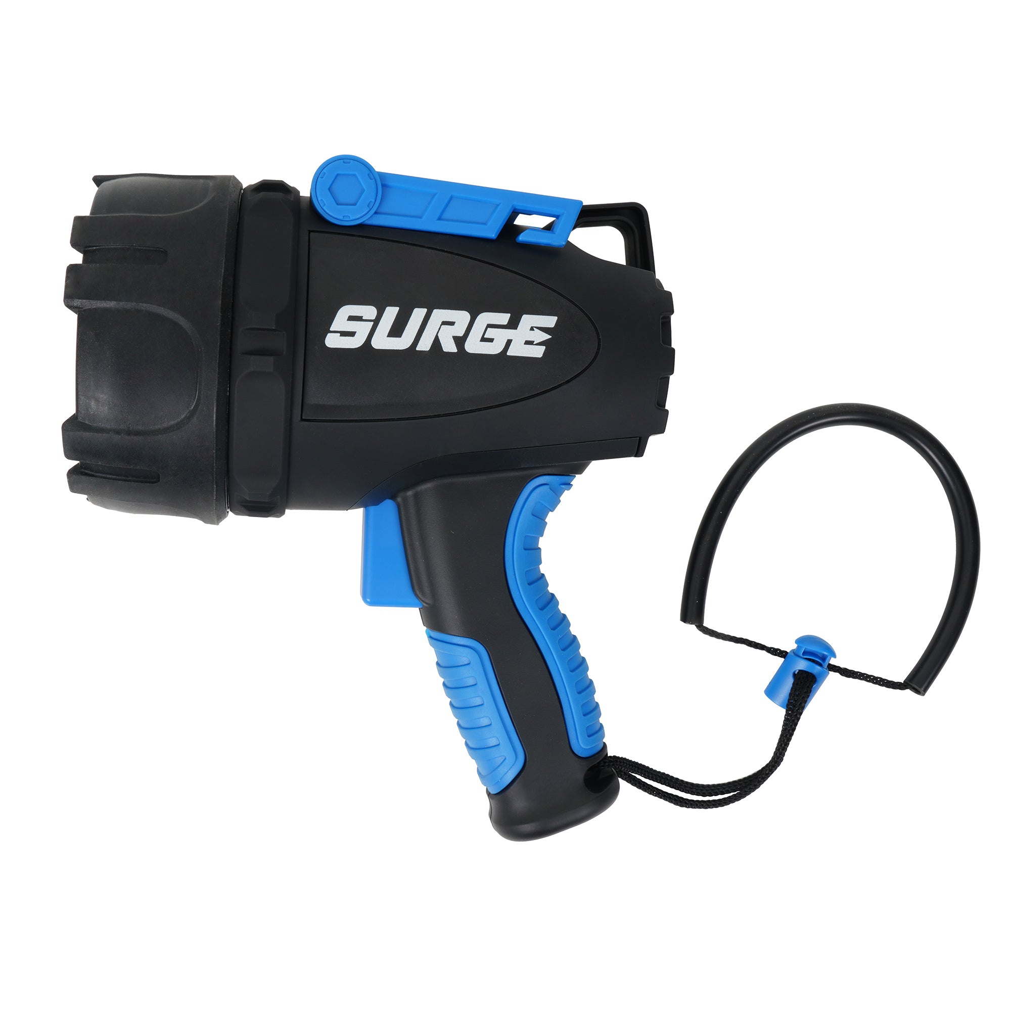 Ignite the night with the 1,000 Lumen Rechargeable LED Spotlight by Surge. This spotlight features a rubberized knurled grip handle for a secure hold and a collapsible stand for hands free use. This spotlight is IP67 water resistant ensuring reliable performance wherever you go. Includes a Type-C charging cord for quick and convenient recharging with a continuous run time of 2.5 hours on high, and 5 hours on low.