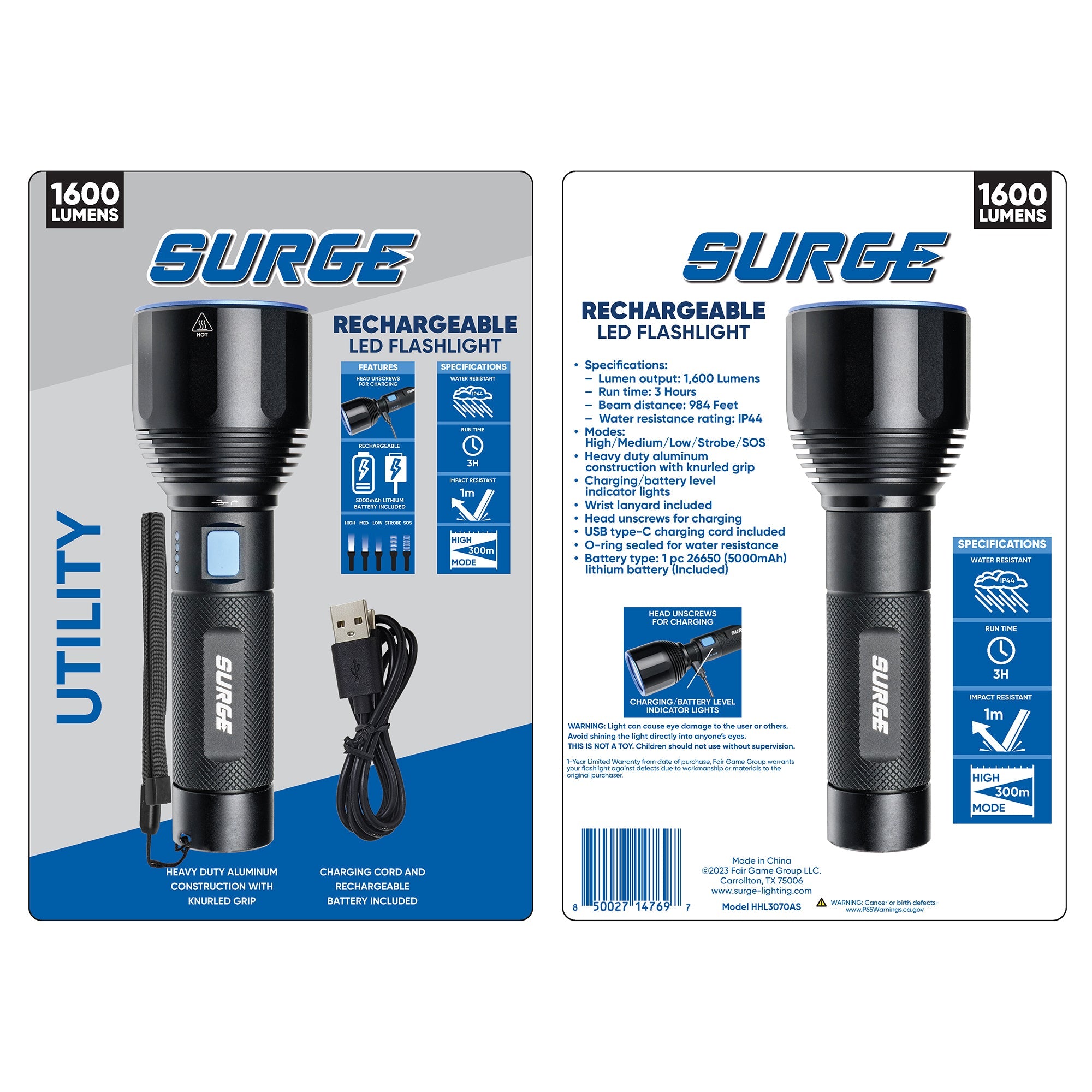 Surge® 1,600 Lumen Rechargeable Utility LED Flashlight