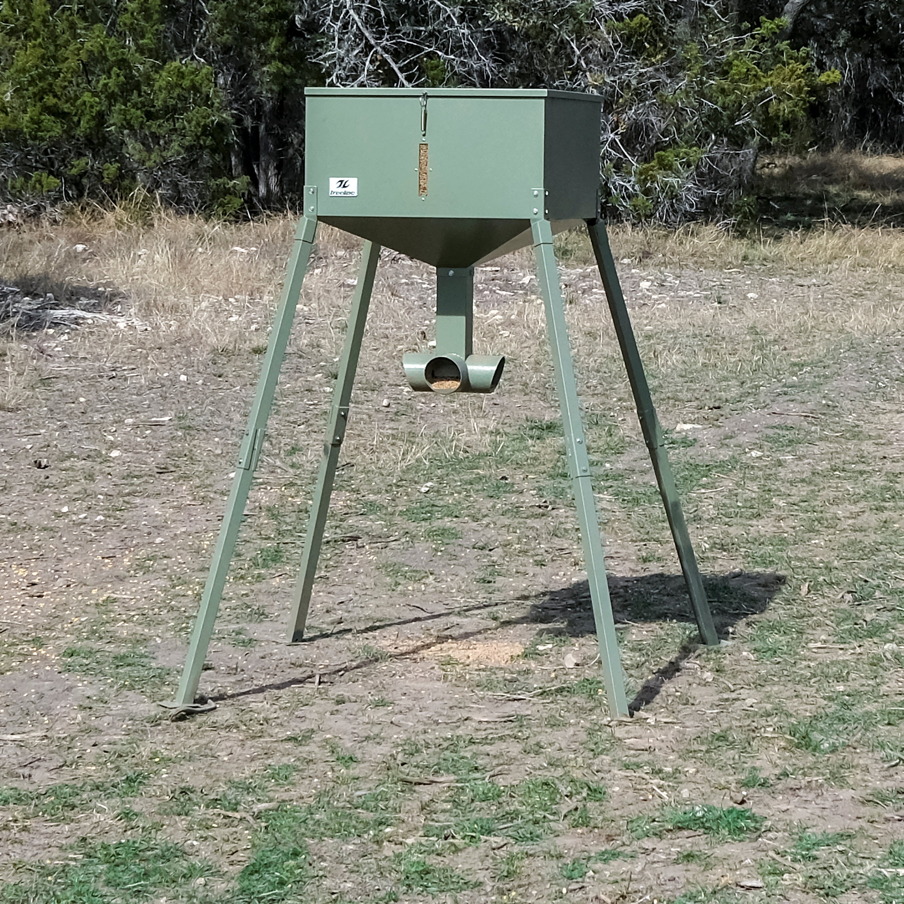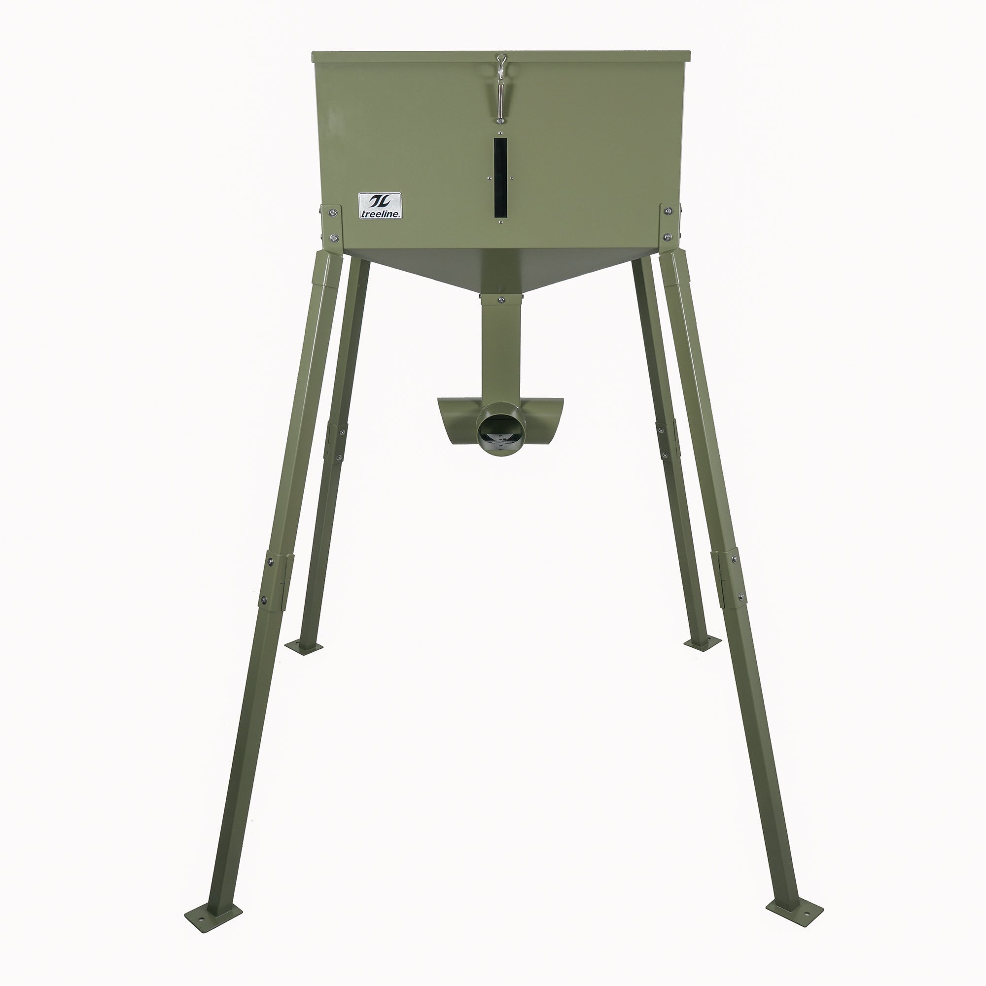 Attract local deer by setting up the treeline 400 lb. Gravity Protein Feeder. This feeder holds up to 400 lb. of feed and provides a quality supplement to help deer reach their true genetic potential. A large viewing window lets you see how much feed remains, and the adjustable feed flow control settings allow you to utilize any type of feed (i.e. protein, corn, corn/soybean, etc.).