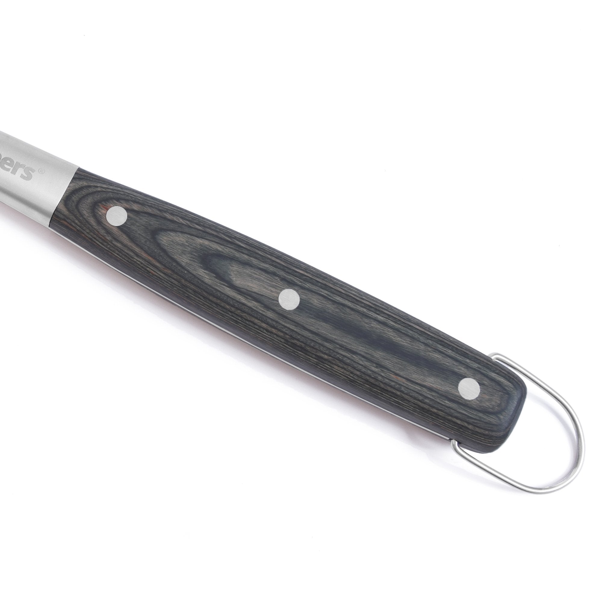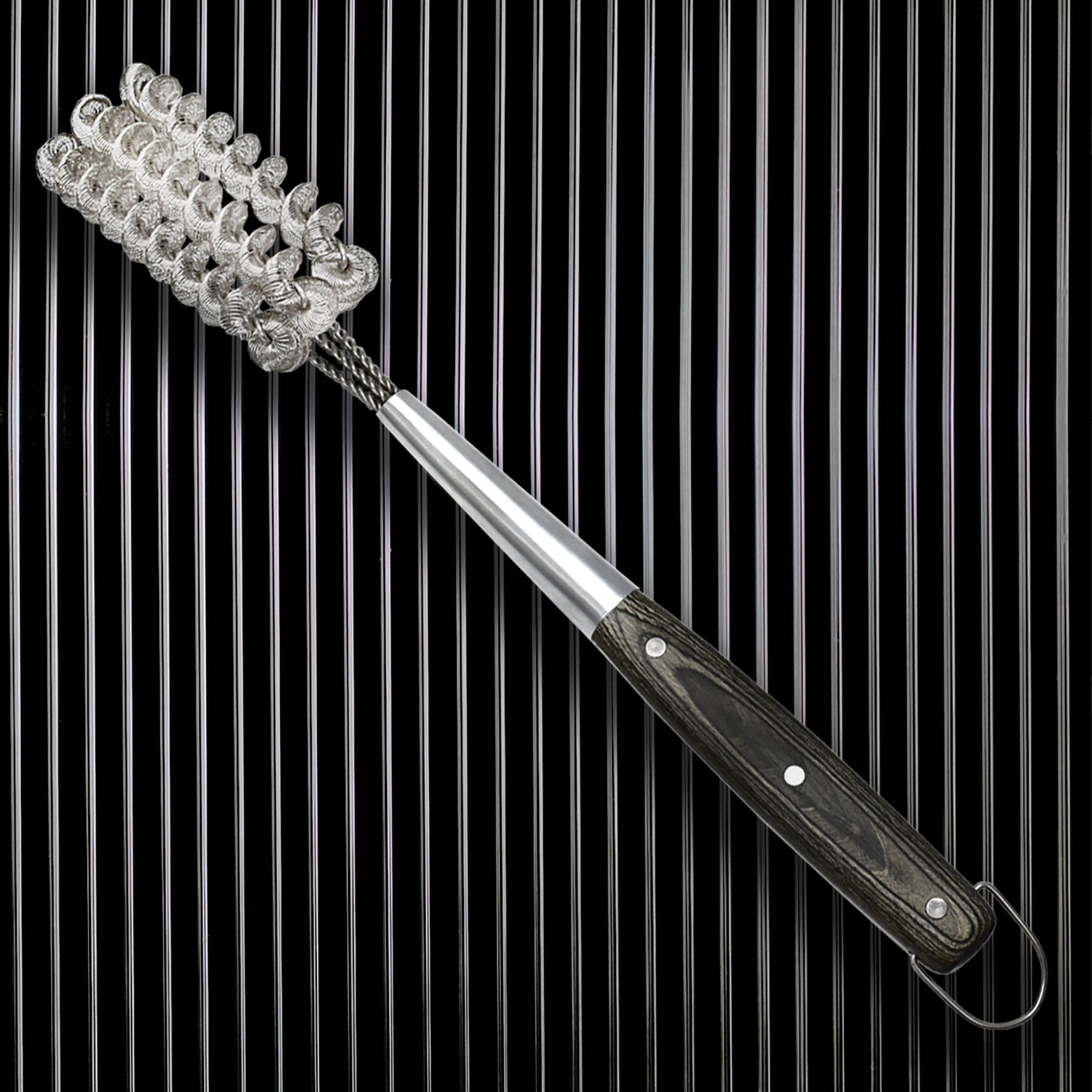 The 3 Embers ACC7404AS Stainless Steel Grill Cleaning Brush is perfect for keeping your grill spotless. This stainless steel metal grill brush features a coil design that ensures that you will not have any bristles break off or end up in your food. This unique BBQ grill brush makes cleaning your grates very easy. The wire grill brush has metal rings for hanging on your grill. The grill cleaning brush also features a durable pakkawood handle.