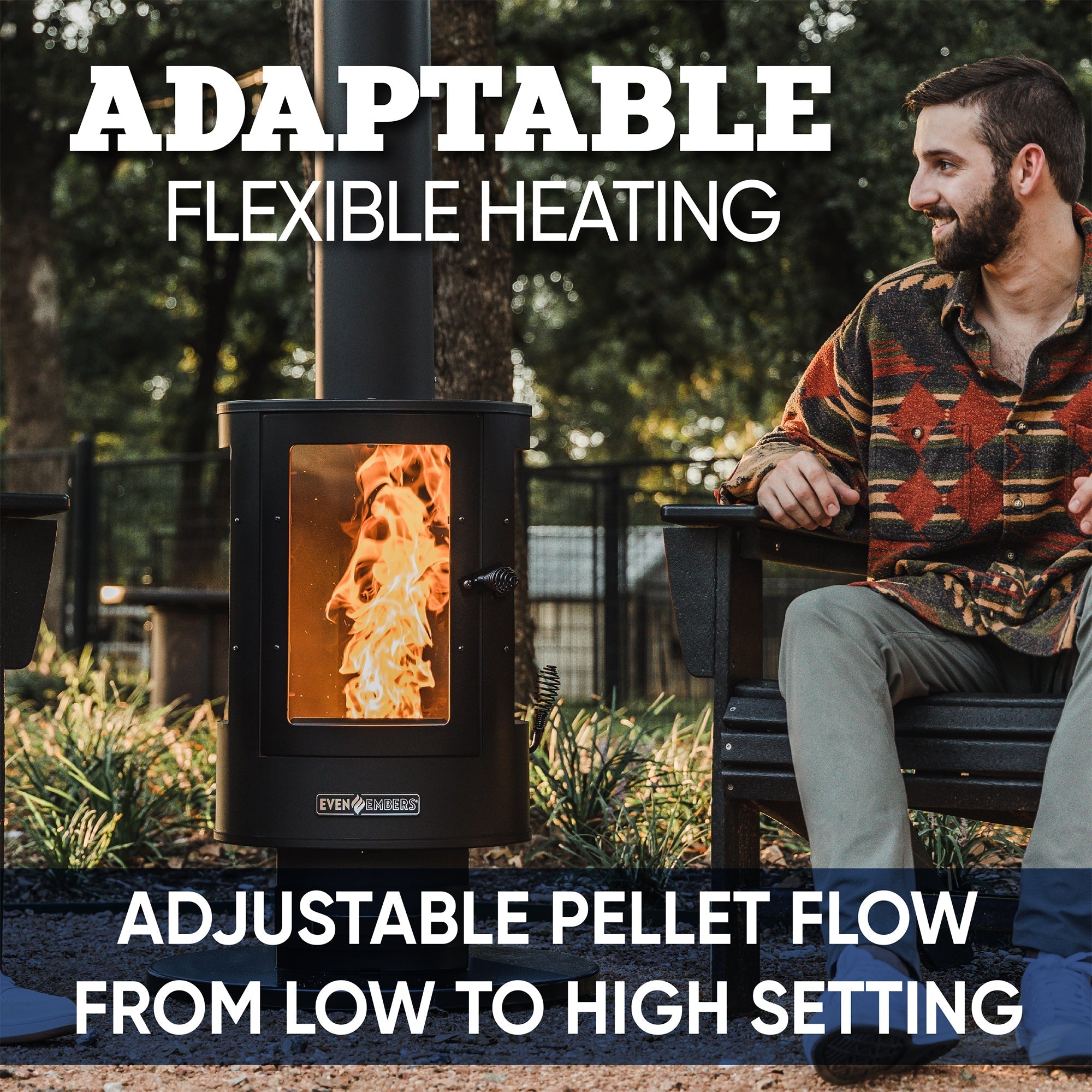 The Even Embers Pellet Patio Heater out-performs traditional Propane Heaters by providing more heat fueled by hardwood pellets, saving up to 75% of the average fuel cost of the traditional propane units. The Pellet Fueled Patio Heater by Even Embers can be adjusted between high and low settings providing the perfect warmth solution for any outdoor setting.