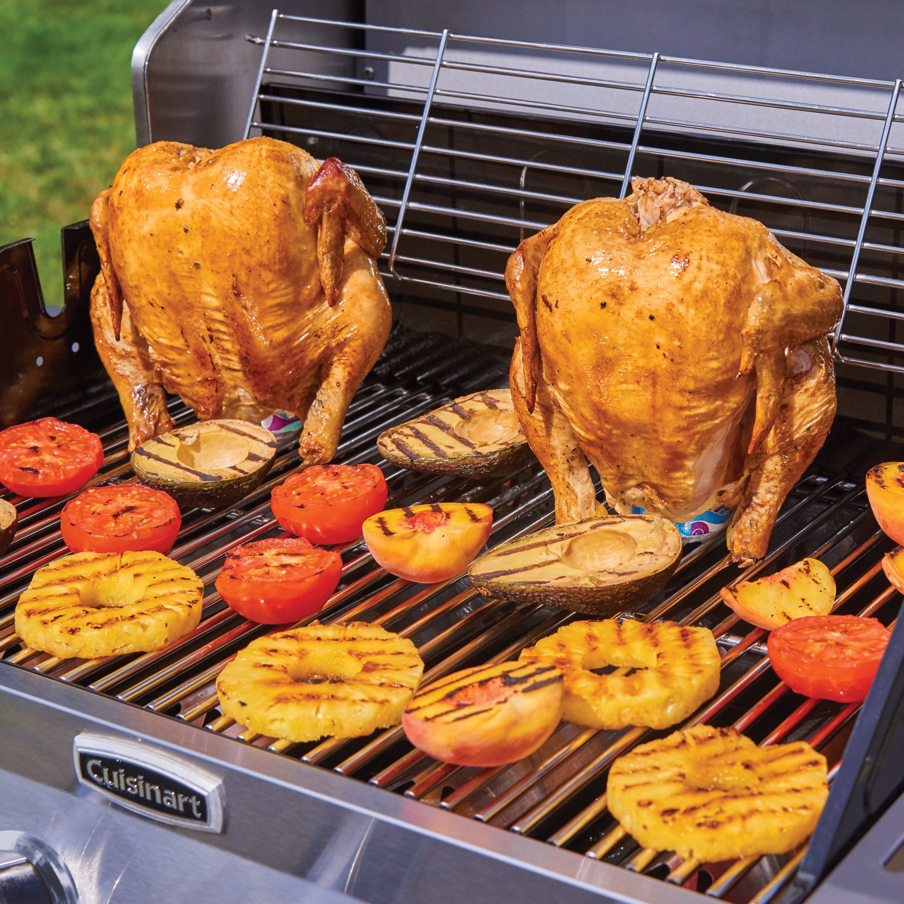 DISCONTINUED - Bring the high-end appliance look and performance you desire outdoors while preparing a gourmet grilled meal for friends and family. Enjoy an exceptional, worry-free cooking experience with an appliance grade viewing window that allows you to monitor food quickly and easily without losing heat. Grill all your bbq favorites simultaneously with ease on four independent ignition burners, stainless steel cooking grates, and heat tents that are designed for even heat distribution, allowing you to maximize your grill for even the largest of backyard bbqs. Experience effortless entertaining and get the bbq that leaves you wanting to grill more with the Cuisinart Deluxe Four-Burner Gas Grill.