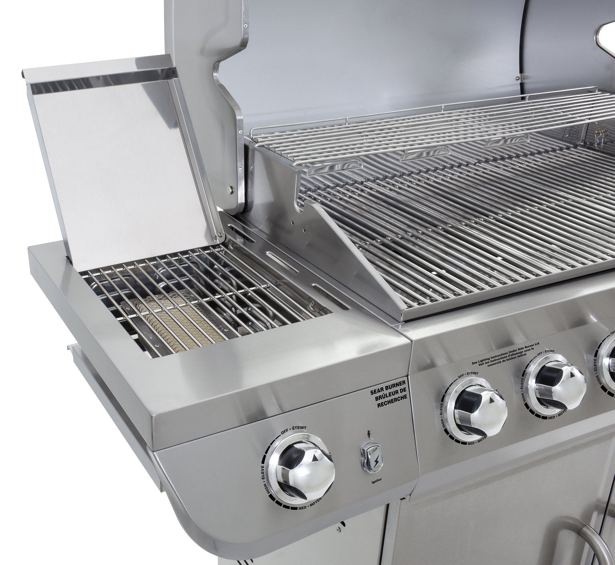 - Stainless-Steel Side Burner: Easily prepare side-dishes on the 12,000 BTU side burner.