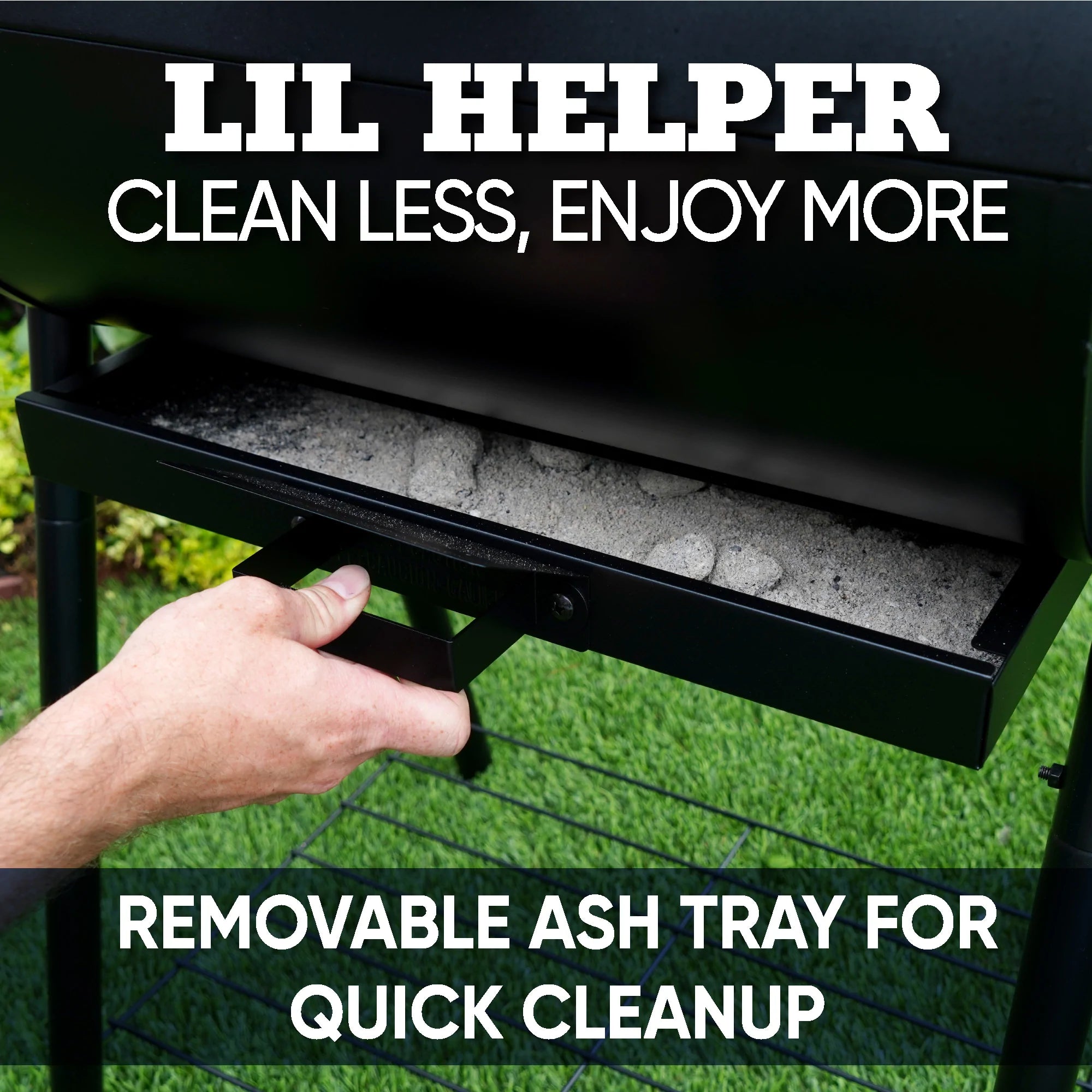 - Removeable ash tray for quick clean up