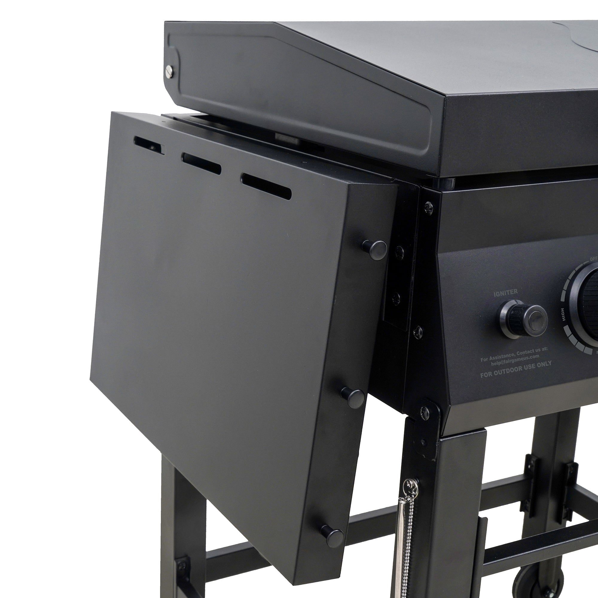 • Hinged steel lid protects the griddle and can be used while cooking