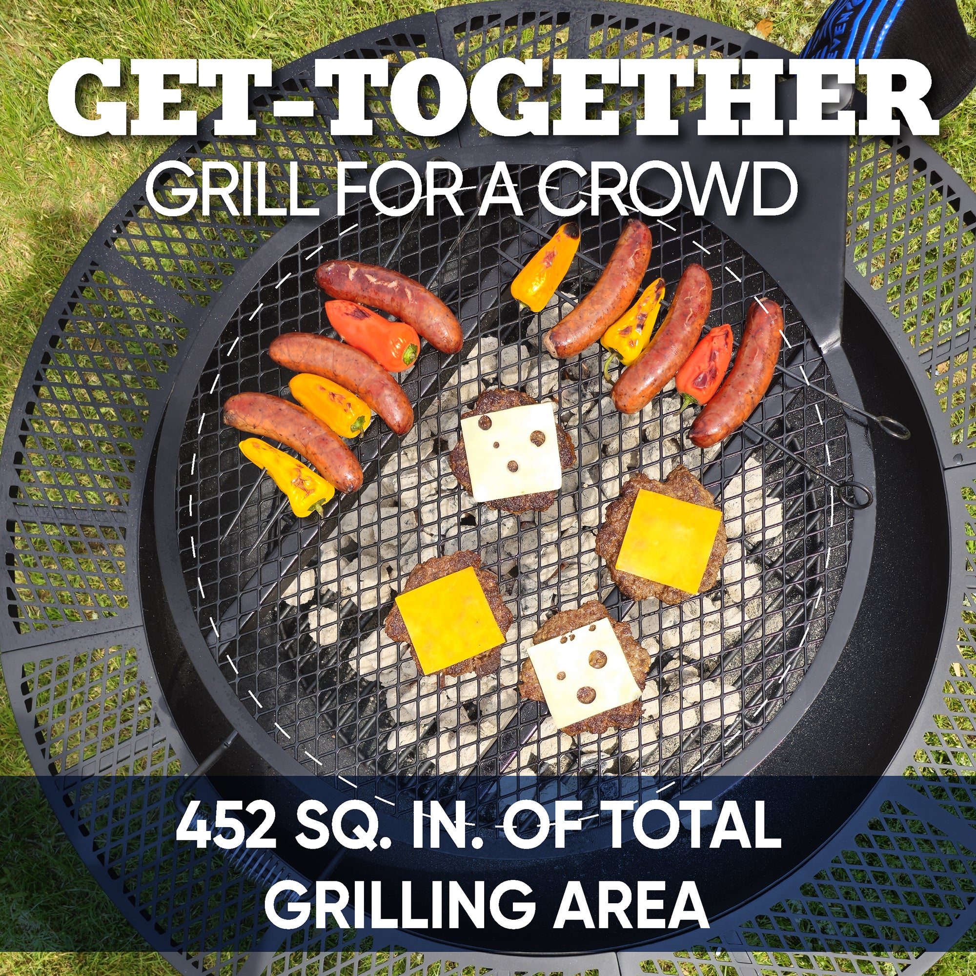 - 24-inch diameter coated steel cooking grate offers 452 square inches of cooking space