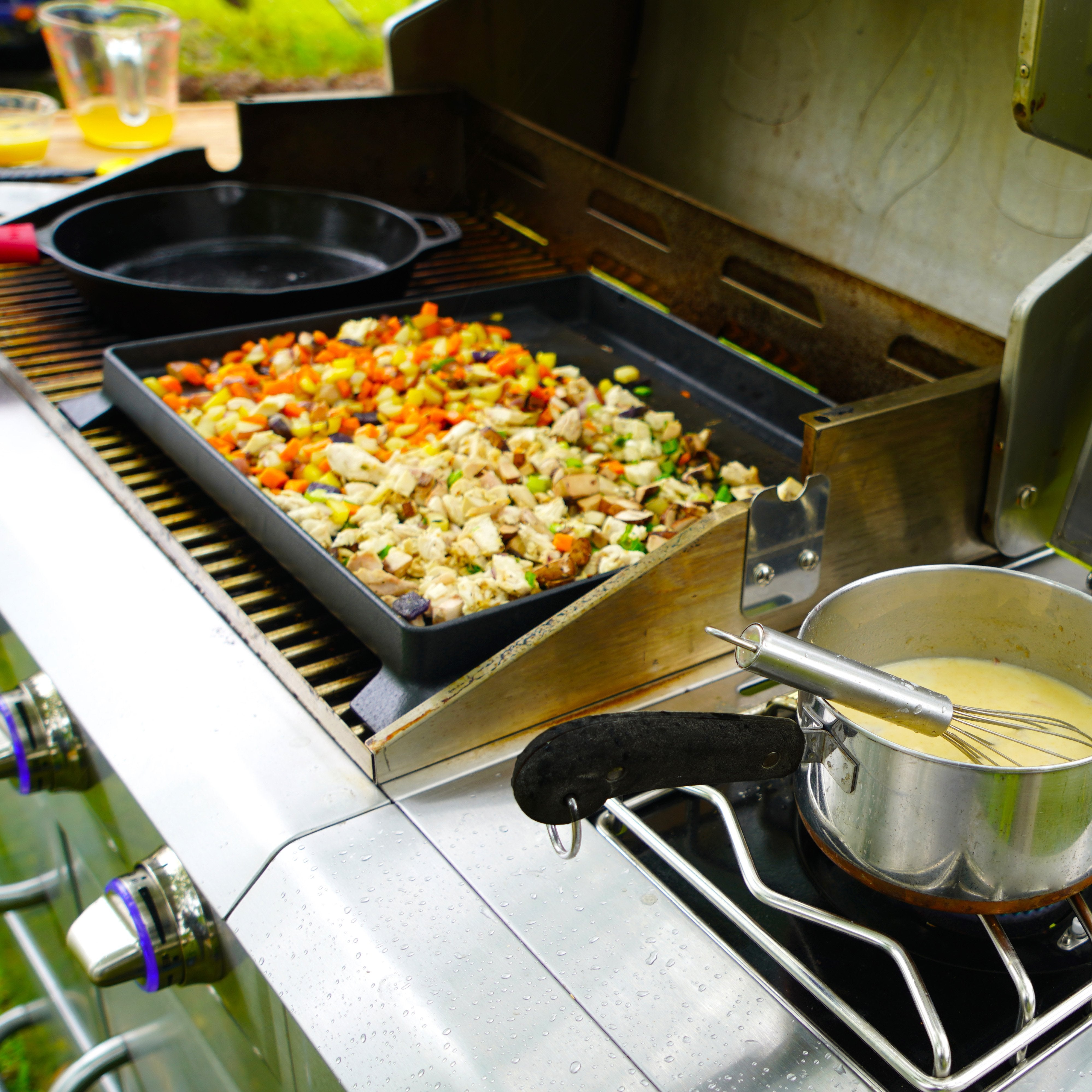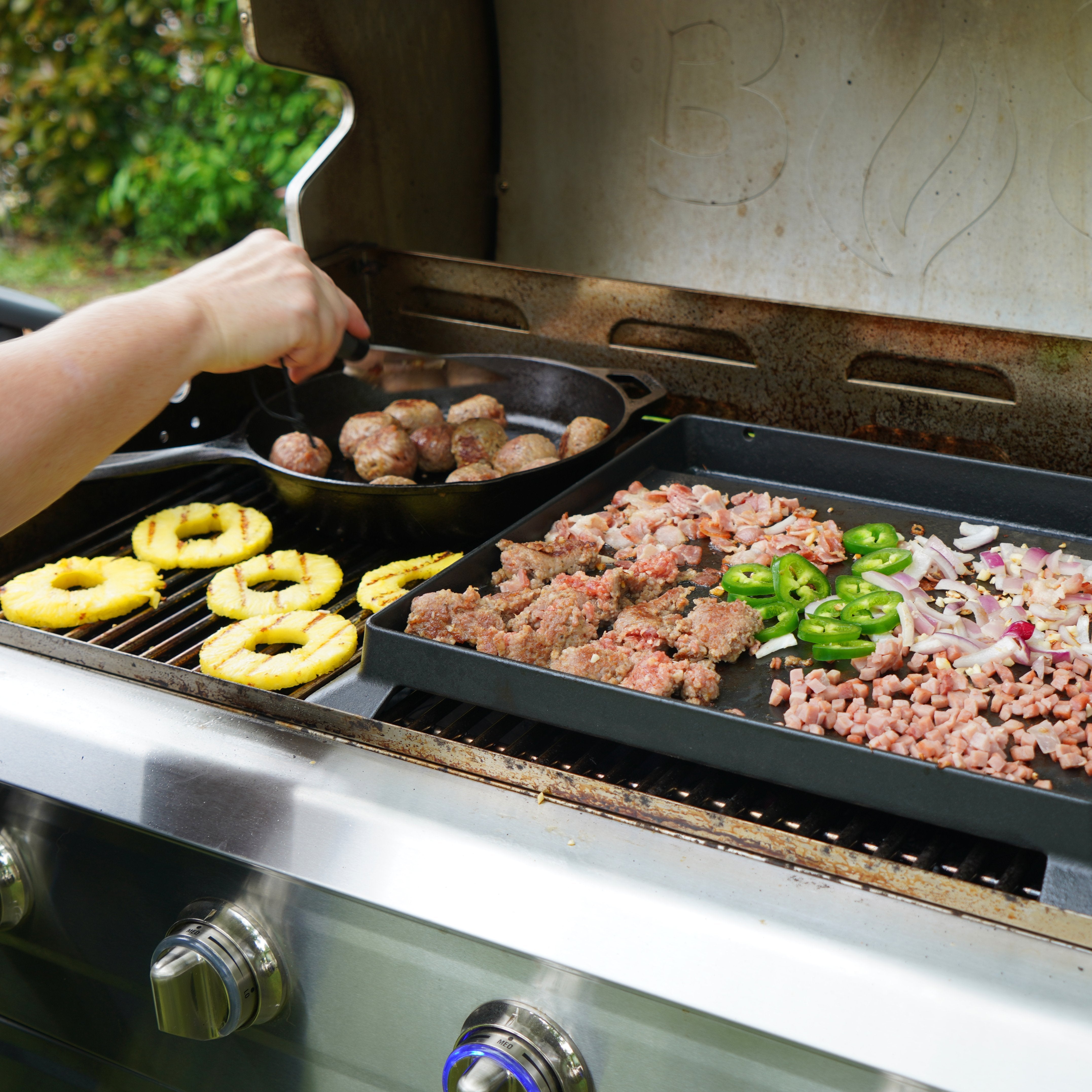 Make breakfast, lunch, or dinner on this ready-to-use cast iron griddle. Experience cooking versatility as you can griddle, saute, steam, sear, and stir-fry for every meal. The griddle is designed to work seamlessly on top of your cooking grates.