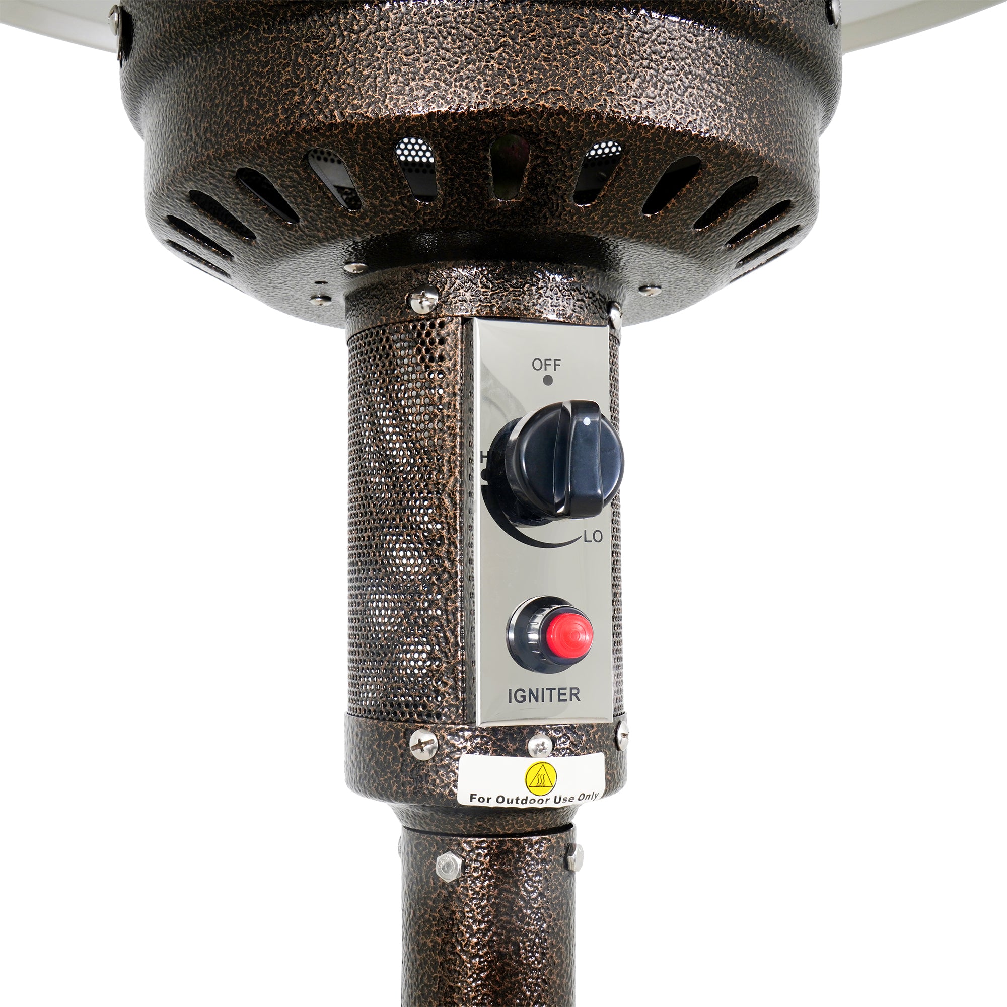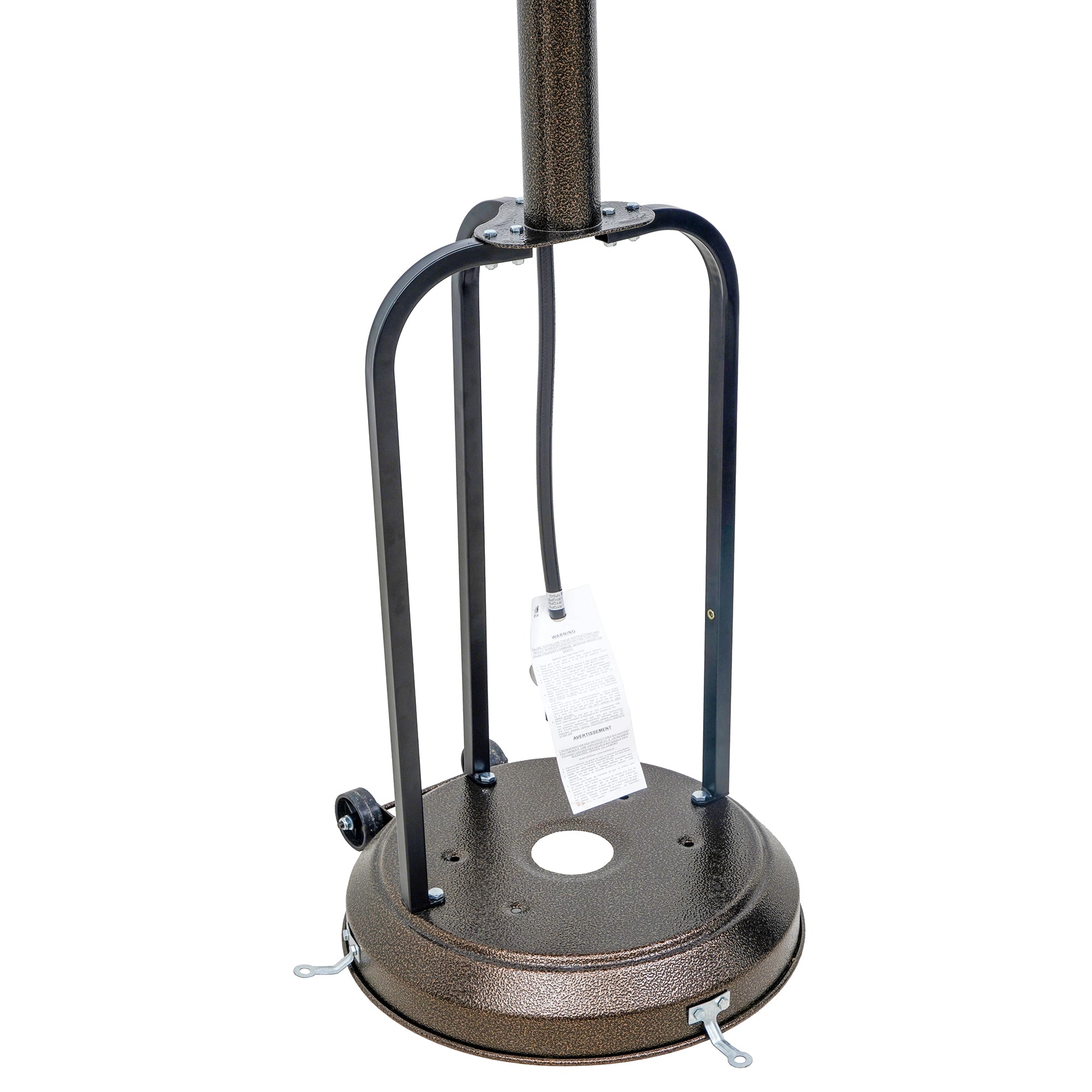 We've got your backyard covered this winter season with the Even Embers Gas Patio Heater. Producing 46,000 BTU's, it quickly heats up to 200 sq. ft., perfect for patios, decks, or outdoor gatherings. The electronic push-button ignition gets you started quickly, delivering steady warmth in under a minute. A wide 32-inch heat reflector spreads heat evenly, while the adjustable temperature knob gives you full control. Built-in safety systems include automatic tip-over shut-off and anchor brackets for secure setup. The built-in wheels and easy-lift tank housing make moving and maintaining the heater simple, so you can enjoy warmth wherever you need it. Finished in durable oil-rubbed bronze hammertone, this heater adds timeless style to any outdoor space.