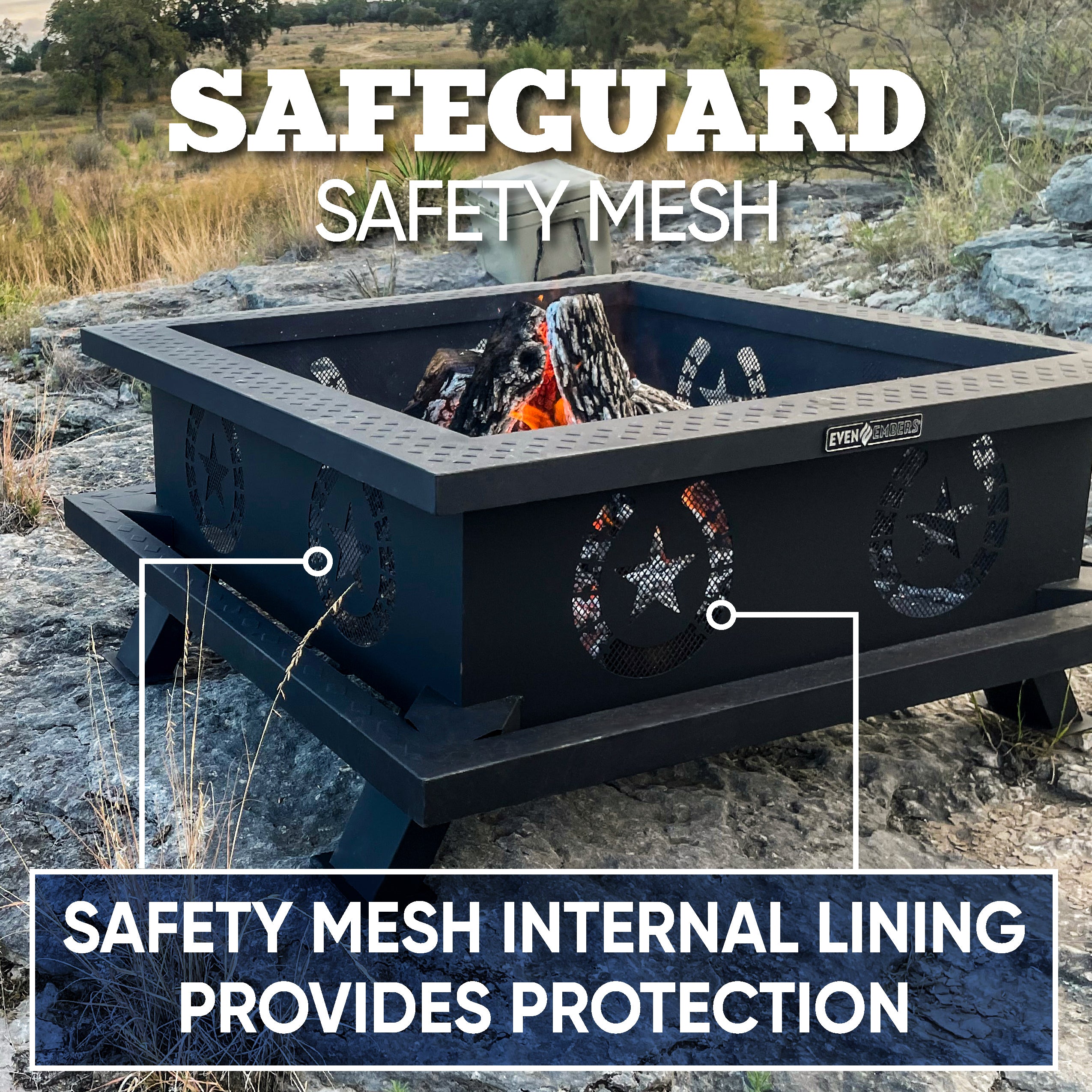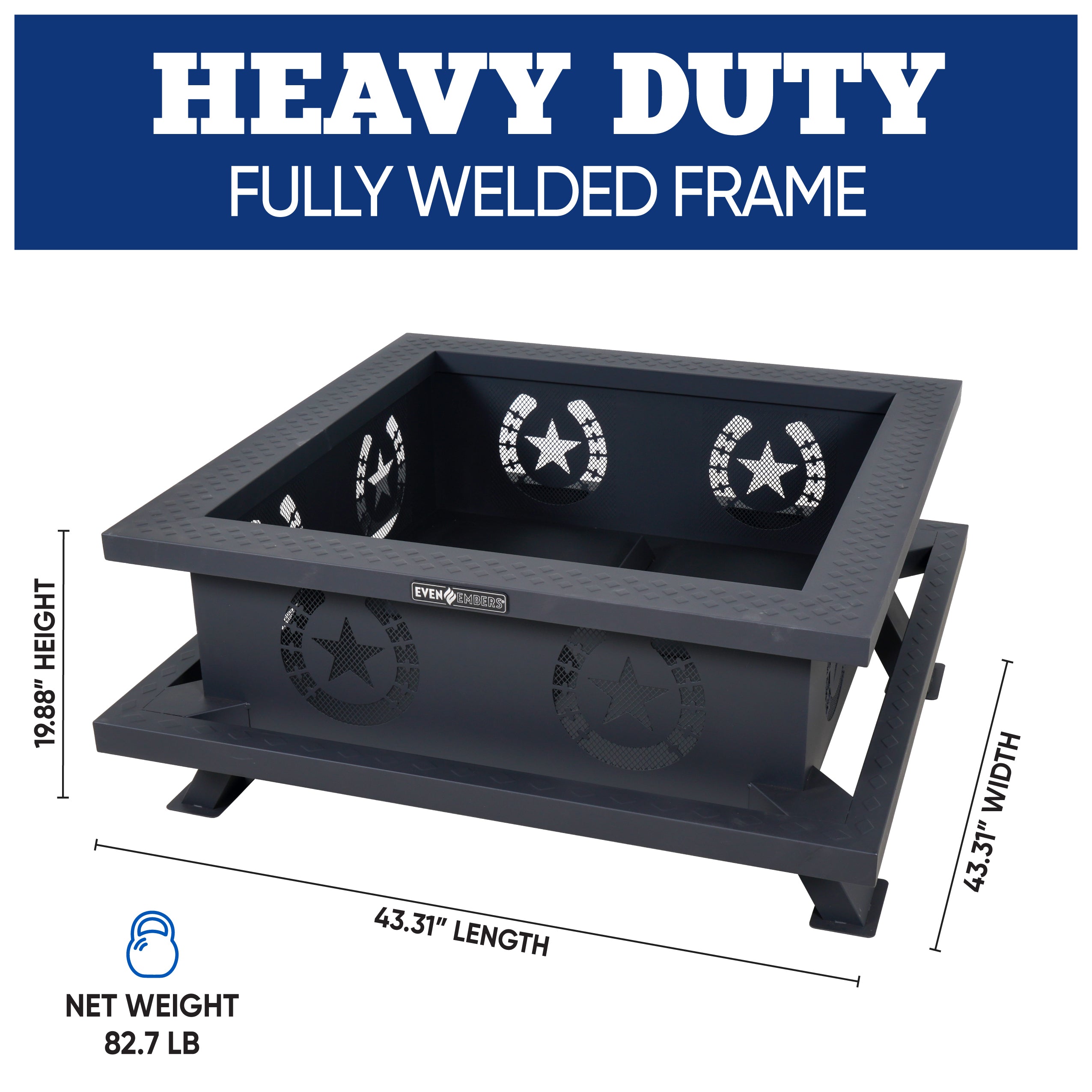 Bring your outdoor gatherings around the Even Embers Heavy Gauge Fire Pit. Crafted with fully welded, heavy-duty steel construction and coated with high heat temperature paint, this fire pit ensures long-lasting durability. The integrated ridges at the base elevate the firewood, enhancing airflow to create a more efficient and consistent burn. A safety mesh internal lining adds an extra layer of protection, and the no-assembly-required design lets you enjoy the fire right away.