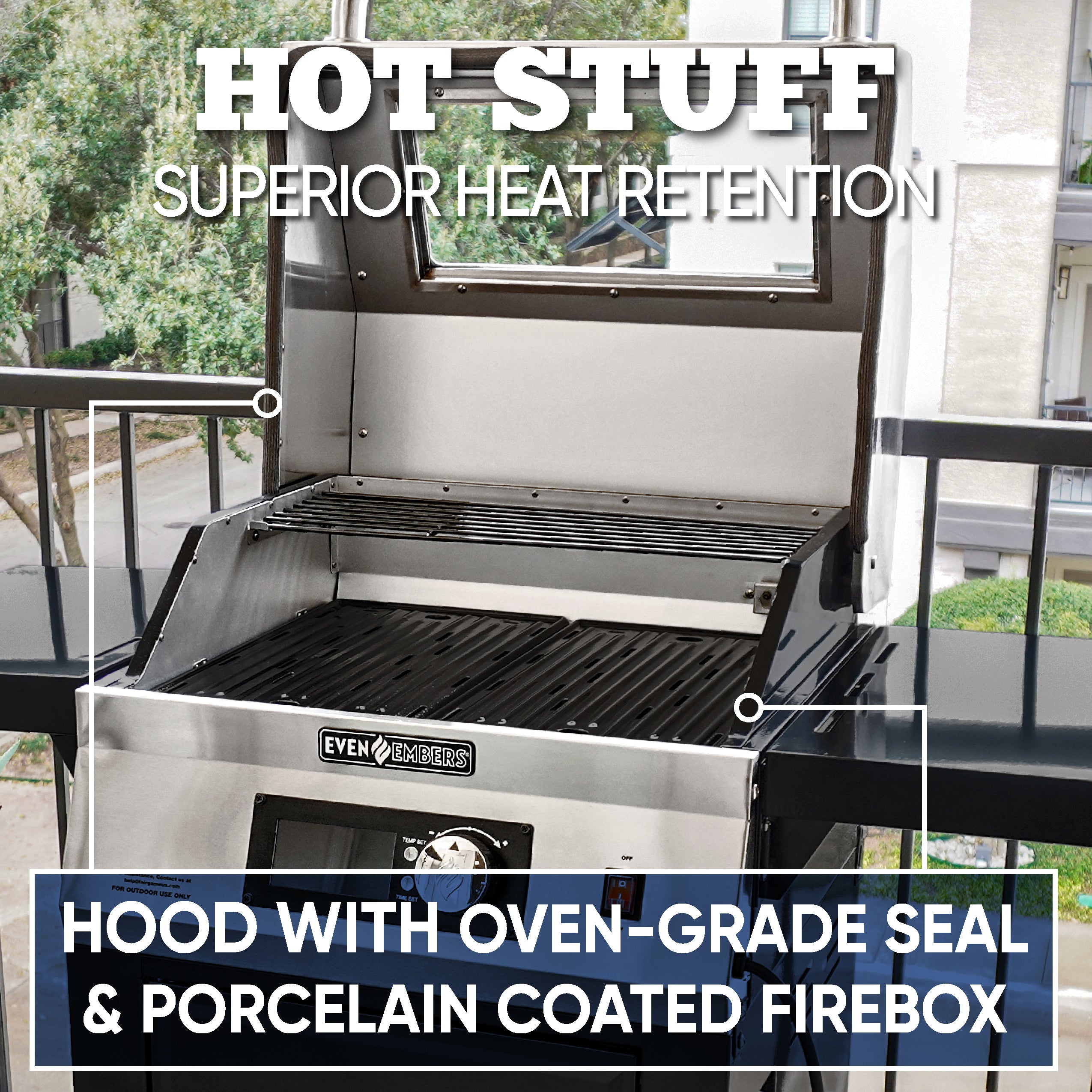 - Superior heat retention: heavy-duty stainless-steel lid and porcelain coated firebox with an oven-grade seal for excellent heat retention and cooking efficiency