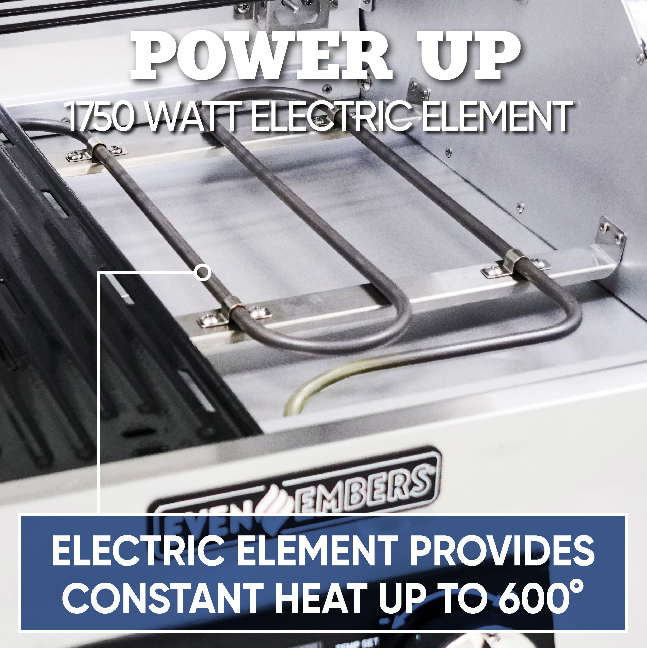 - Electric convenience: 1,750-watt electrical element provides consistent heat with a temperature range of 250-600 degrees