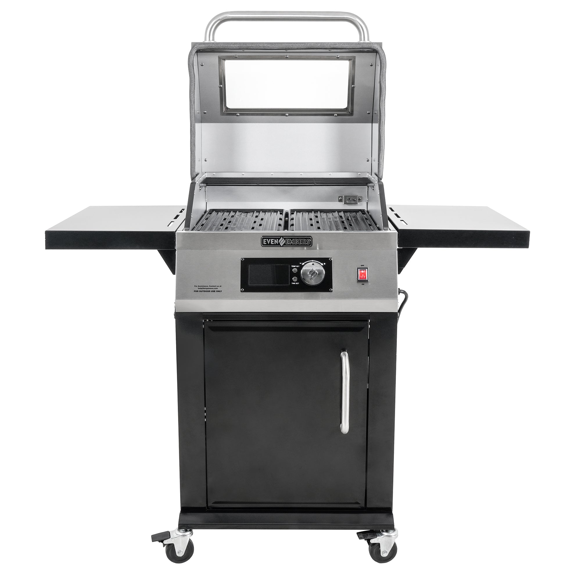 Even Embers Outdoor Electric Grill in Black with Stainless Steel Lid and Control Panel