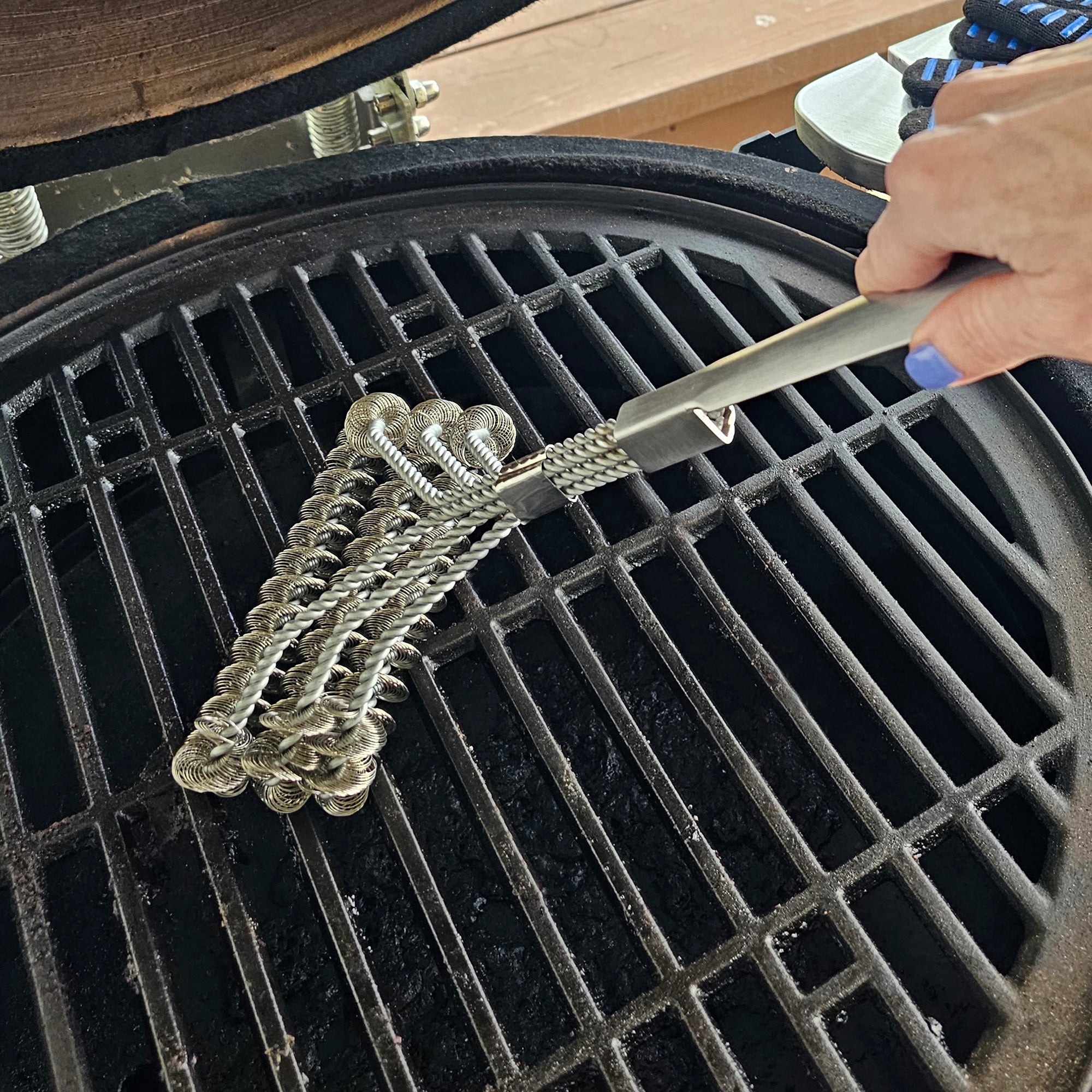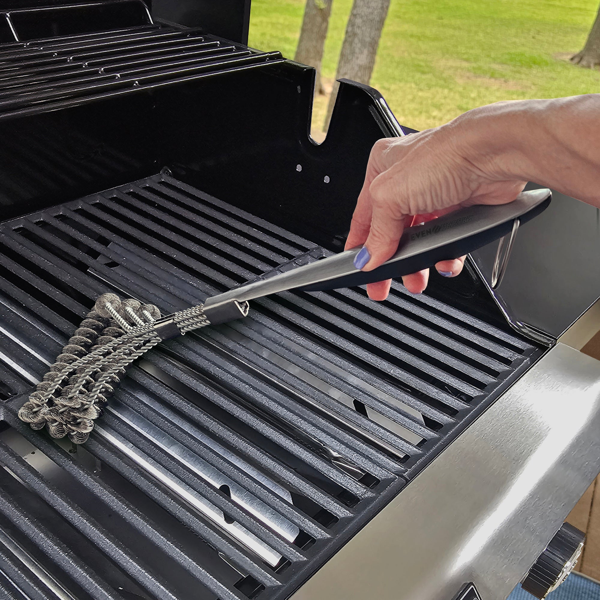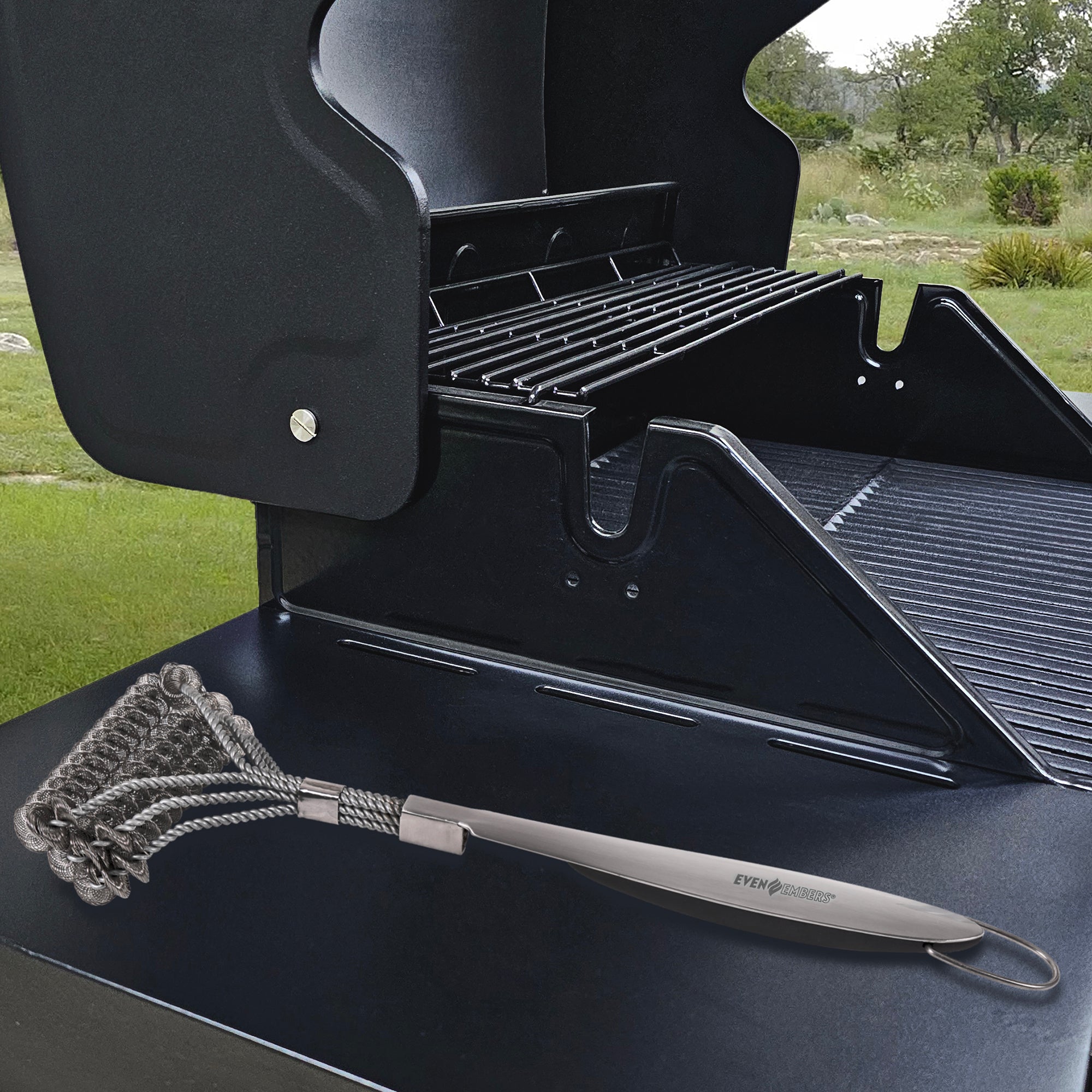Say goodbye to broken bristles with the Even Embers Stainless Steel Grill Brush. Engineered with a 3-head stainless steel coil design, this brush tackles even the most difficult to remove grime and stuck-on food residue. The long handle with a rubber non-slip grip provides added leverage for optimal scrubbing force. Even the dirtiest grills get sparkling clean when you are scrubbing with the Even Embers Stainless Steel Grill Brush.