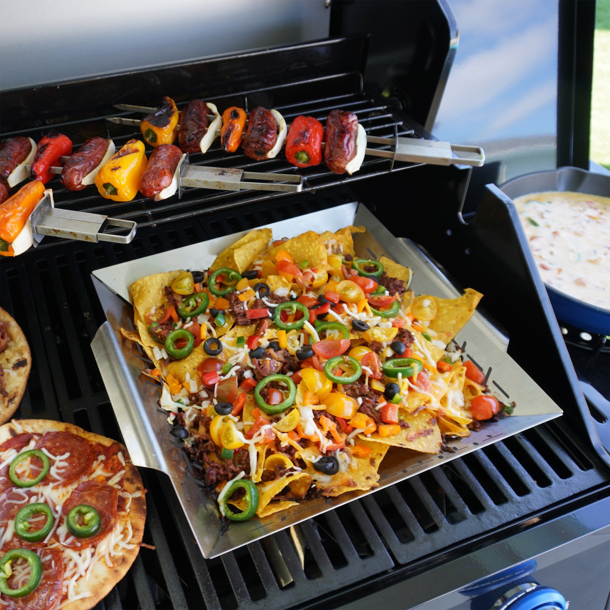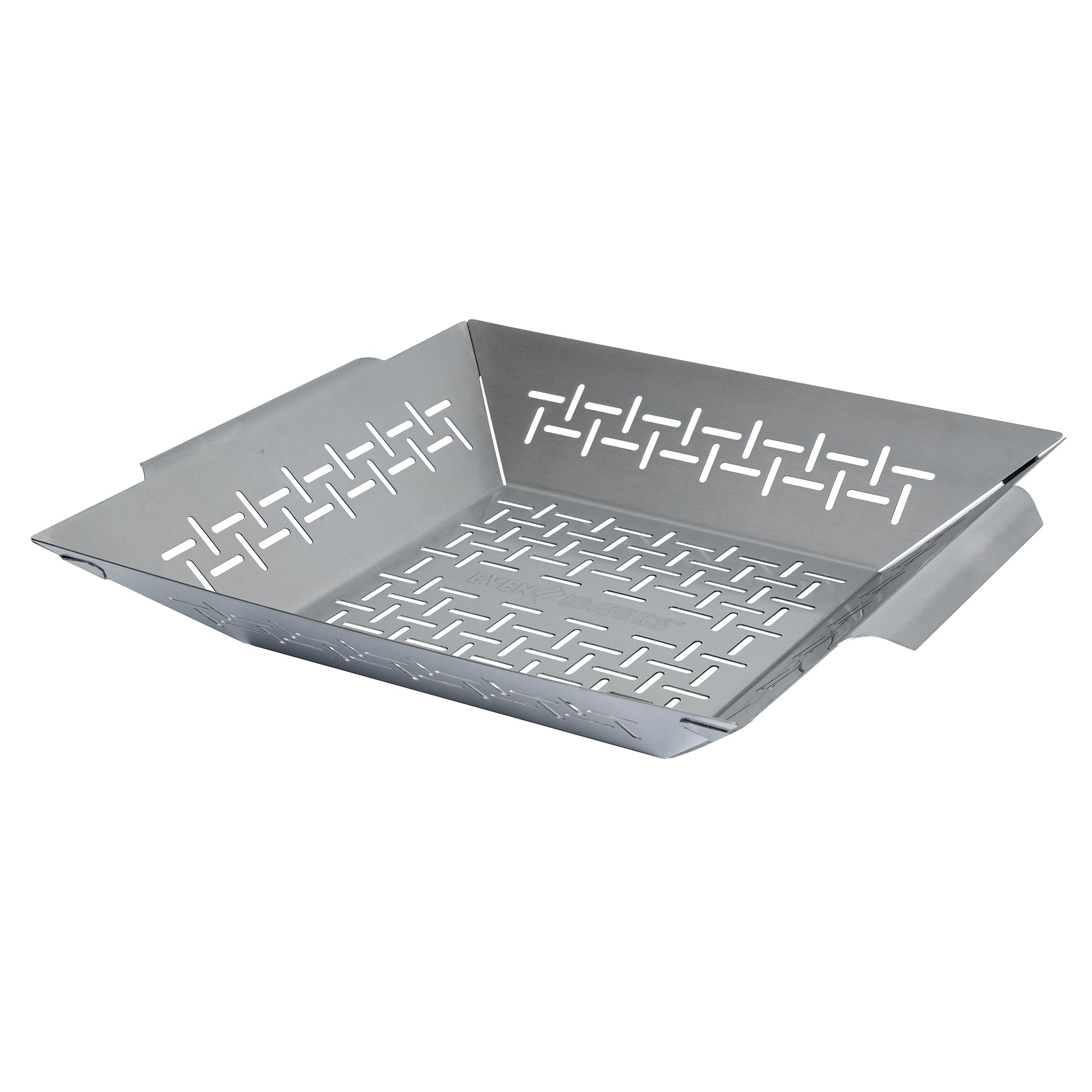 The Even Embers Stainless Steel Grilling Basket basket features evenly spaced holes for optimal heat distribution, ensuring every bite is perfectly cooked. The wide carrying handles provide easy maneuverability on the grill, while the sturdy stainless steel construction guarantees long lasting use. Ideal for grilling veggies and smaller cuts of meat, this versatile basket is designed to bring out the best flavors in your favorite ingredients.