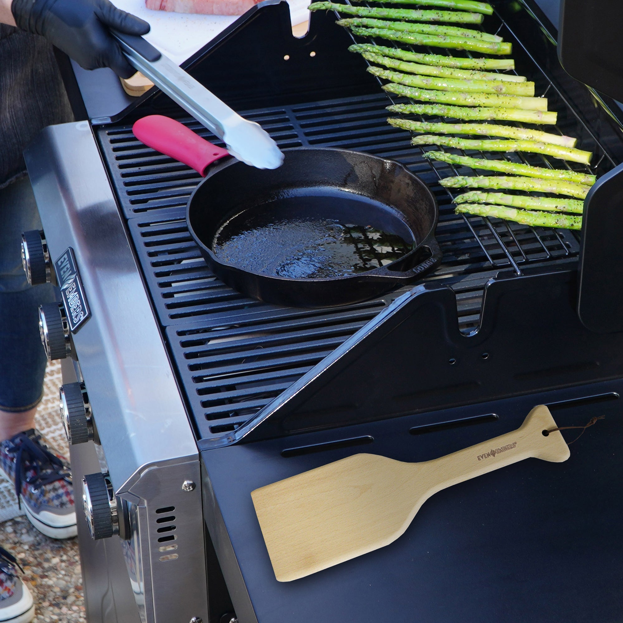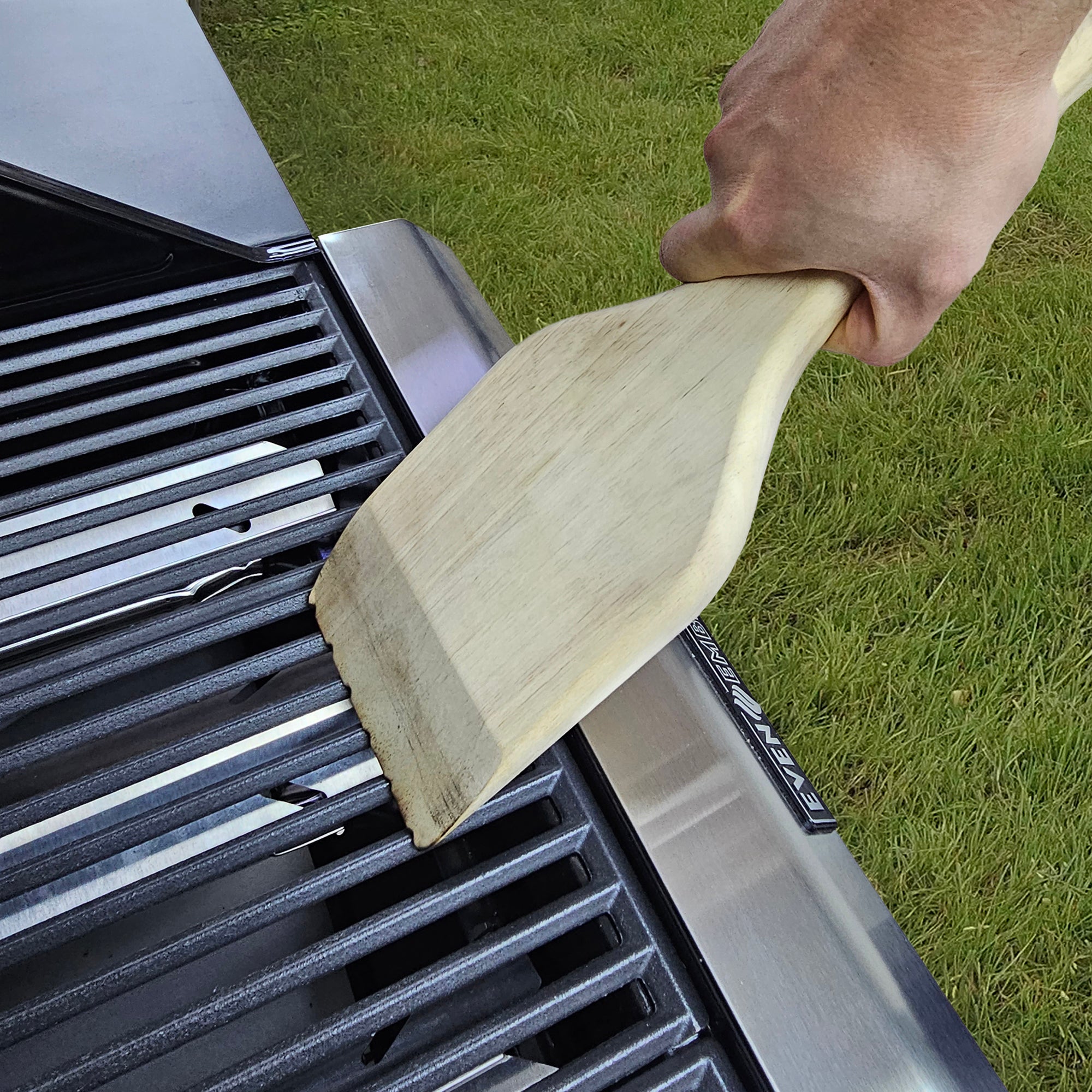 Say goodbye to broken bristles with the Even Embers Wood Scraper Grill Brush. Designed with a thin precision tip, this brush effortlessly forms grooves on virtually any grill, guaranteeing a thorough clean every time. The generously sized handle, this brush ensures effortless two-handed use, providing added leverage for efficient grime removal. Embrace eco-friendly and bristle-free technology, making it a safe choice for both your family and the environment. For best results, heat the grill to a high temperature, then use slow and firm pressure to glide the scraper from front to back. Make sure to keep the grooves in the same place each time.