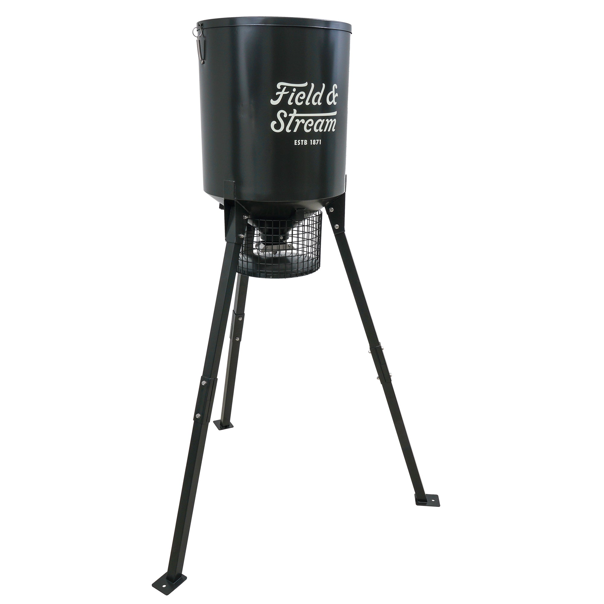 Fill up the Field & Stream 200 lb. Deer Corn Feeder to keep the local deer well-fed. With its large 200 lb. capacity, this game feeder requires fewer frequent refills for easy maintenance. It also boasts a weather-resistant steel construction to ensure long-lasting quality. It also offers a digital timer function to set up feedings at regular intervals that work best for you. It's powered by a 12V motor (battery not included). Mounting holes in the legs allow you to stake the corn feeder to the ground, helping to keep it in place and prevent spillage or damage.