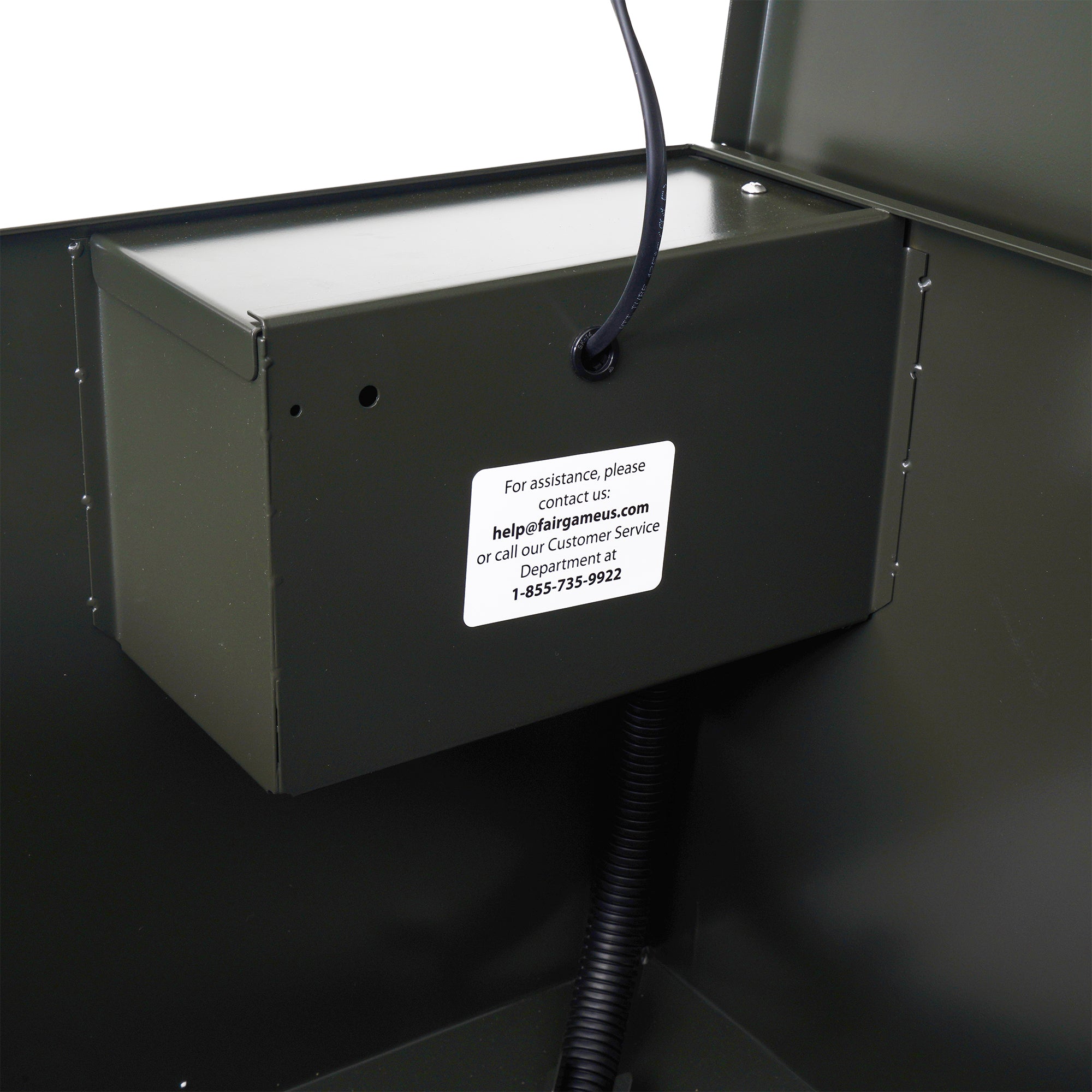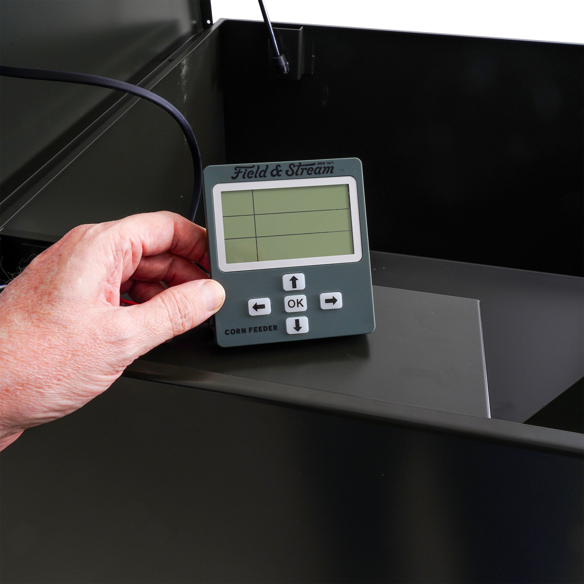 Keep the local deer well-fed with a Field & Stream 350 lb. Steel Deer Corn Feeder. With its large hopper capacity, this corn feeder allows you to supplement their natural forage diet while enjoying less frequent refills. Using a 12V battery and digital timer, this deer feeder also allows you to easily set custom feeding intervals anywhere from 1-6 times per day. A solar panel on top of the feeder keeps the battery charged, eliminating the need for plugs or replacement batteries. Other great features of this corn feeder include a varmint-proof spinner plate that deters pests, an easy-access hinged lid, and a viewing window that lets you keep an eye on the remaining corn levels. Simply stake the corn feeder to the ground, fill the hopper, and set your preferred feeding times to get started.
