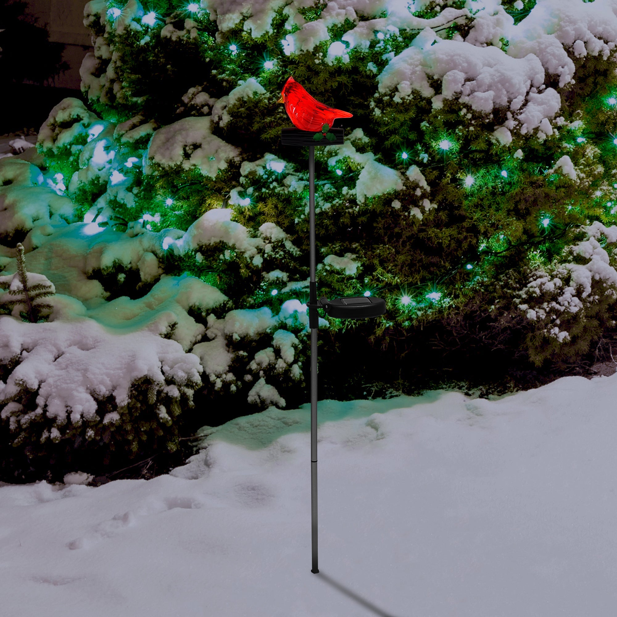 Get in the holiday spirit this season and decorate your outdoor living space with the Lux-Landscape Solar Cardinal Light. The Solar Cardinal Light comes fully equipped with one white LED light surrounded by a red cardinal-shaped lens attached to a stainless steel and plastic stake. No longer be held back by cords or remember to unplug your Christmas lights this season by the convenience of inserting your solar light into the ground, allowing the integrated solar panel to charge the battery during the daytime and automatically light up at night. Your outdoor living space will be sure to shine this season with the Lux-Landscape Solar Cardinal Light.