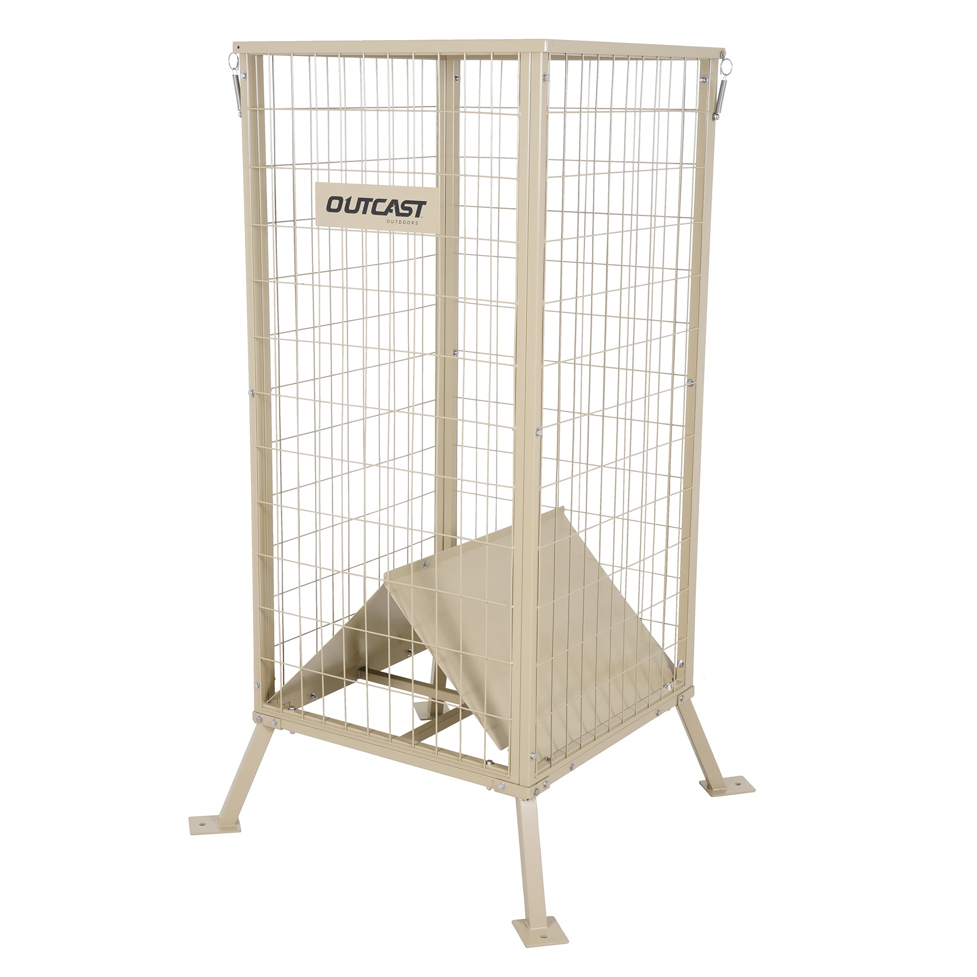 Do your part to keep the local deer well-fed by setting up the Outcast 350 lb. Cottonseed Feeder. It holds up to 350 lb. of cottonseed to supplement the natural deer forage diet. The game feeder is made from weather-resistant steel and has a V-shaped channel to help push the cottonseed to the edges.