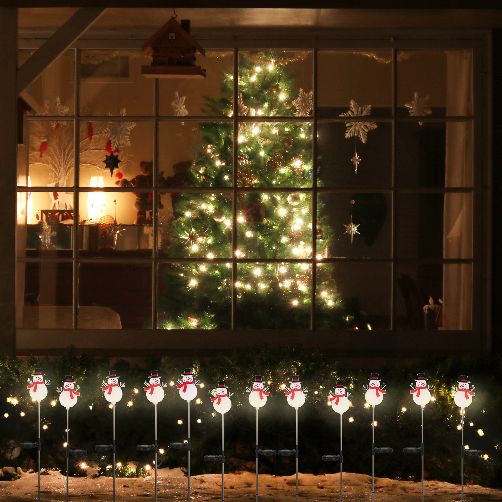 Bring the holidays outdoors with the Lux-Landscape Solar Snowman Holiday Light 12 pack. This festive outdoor snowman-shaped light features an integrated solar panel that charges the battery during the daytime. Insert the solar light's stake into the ground to brighten up your outdoor space this holiday season.