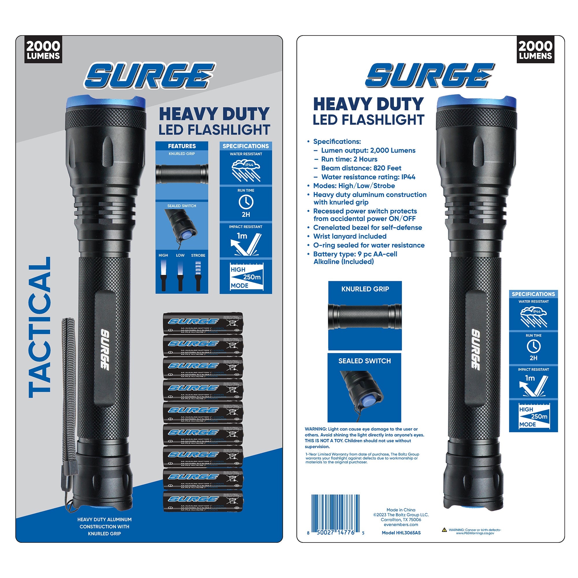 Surge® 2,000 Lumen Tactical LED Alkaline Flashlight