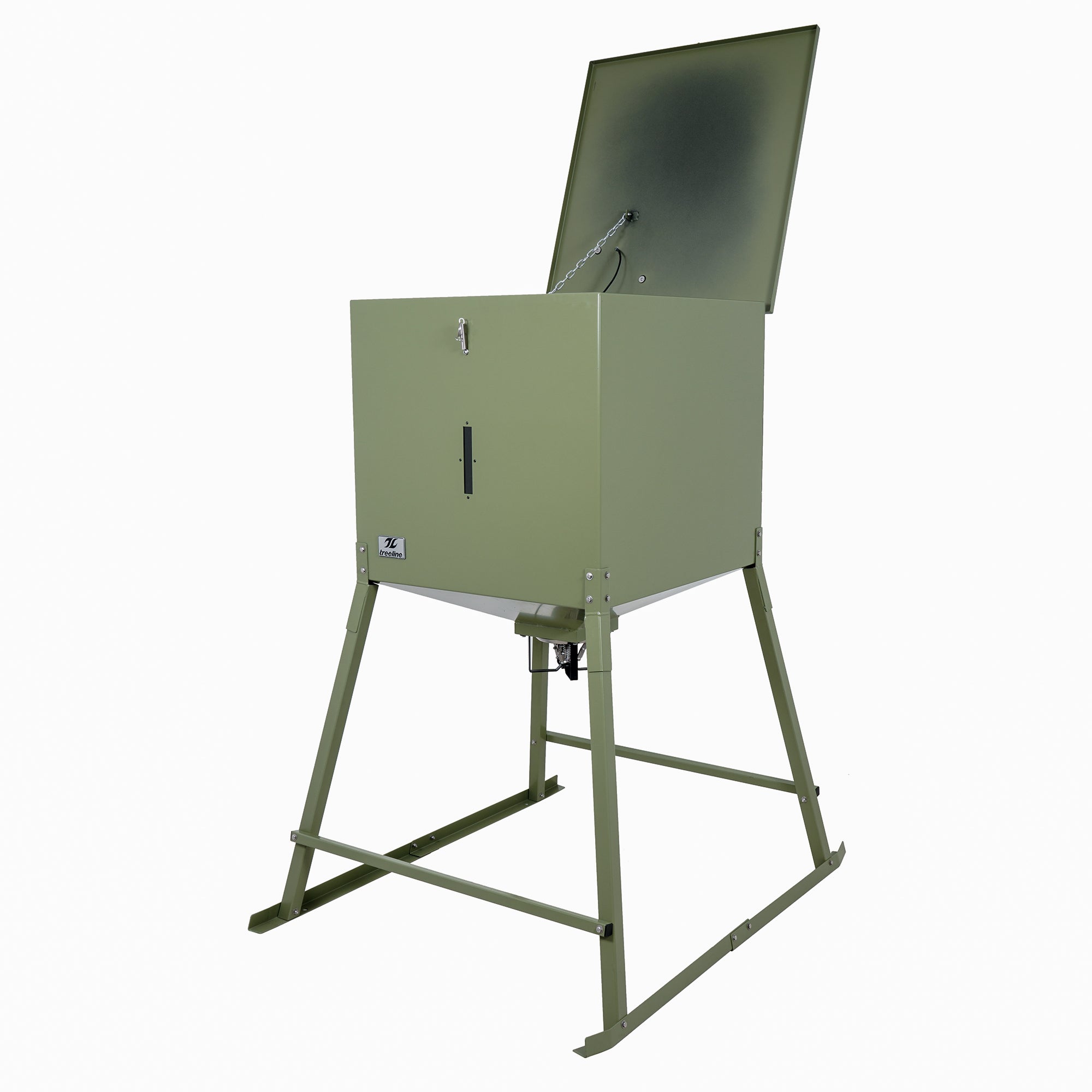 Do your part to keep the local deer well-fed by setting up the treeline 600 lb. Corn Feeder. It holds up to 600 lb. of deer corn to supplement the natural deer forage diet. A glass window lets you see how much corn remains, and the digital timer function gives you the option to automatically feed 1-6 times daily. The corn feeder is powered by a 12V motor and is equipped with varmint-proof protection.